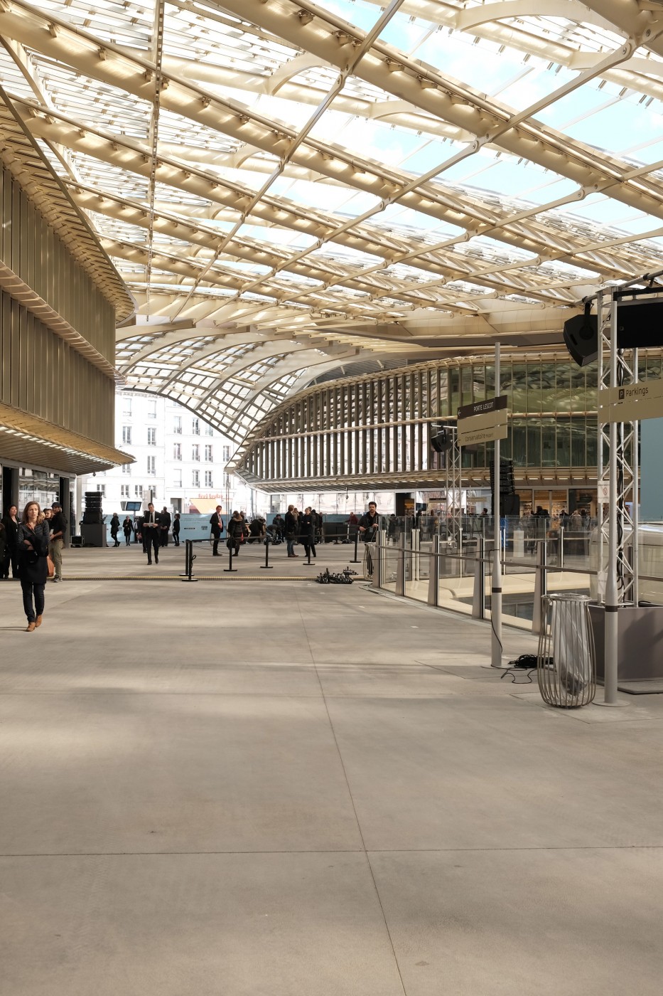 A l’extérieur, la canopée, un toit de poutrelles métalliques sensé ressembler à une feuille. C’est plutôt réussi, même si je suis moyen fan de ce coloris jaunâtre façon coquille d’oeuf. Surtout, on peut enfin aller d’un bout à l’autre du forum sans passer par un dédale improbable de couloirs en tout genre !