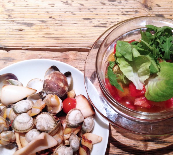 Et puis, on passe à table. La salle, située un étage plus bas, est petite mais chaleureuse : bois brut, carreaux de ciment, grandes baies vitrées.