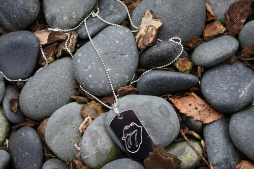 collier avec plaque rolling stone, le tout argent. Taille 80cm. Possibilité en plaqué or, prix : 45€ argent / 50€ plaqué or