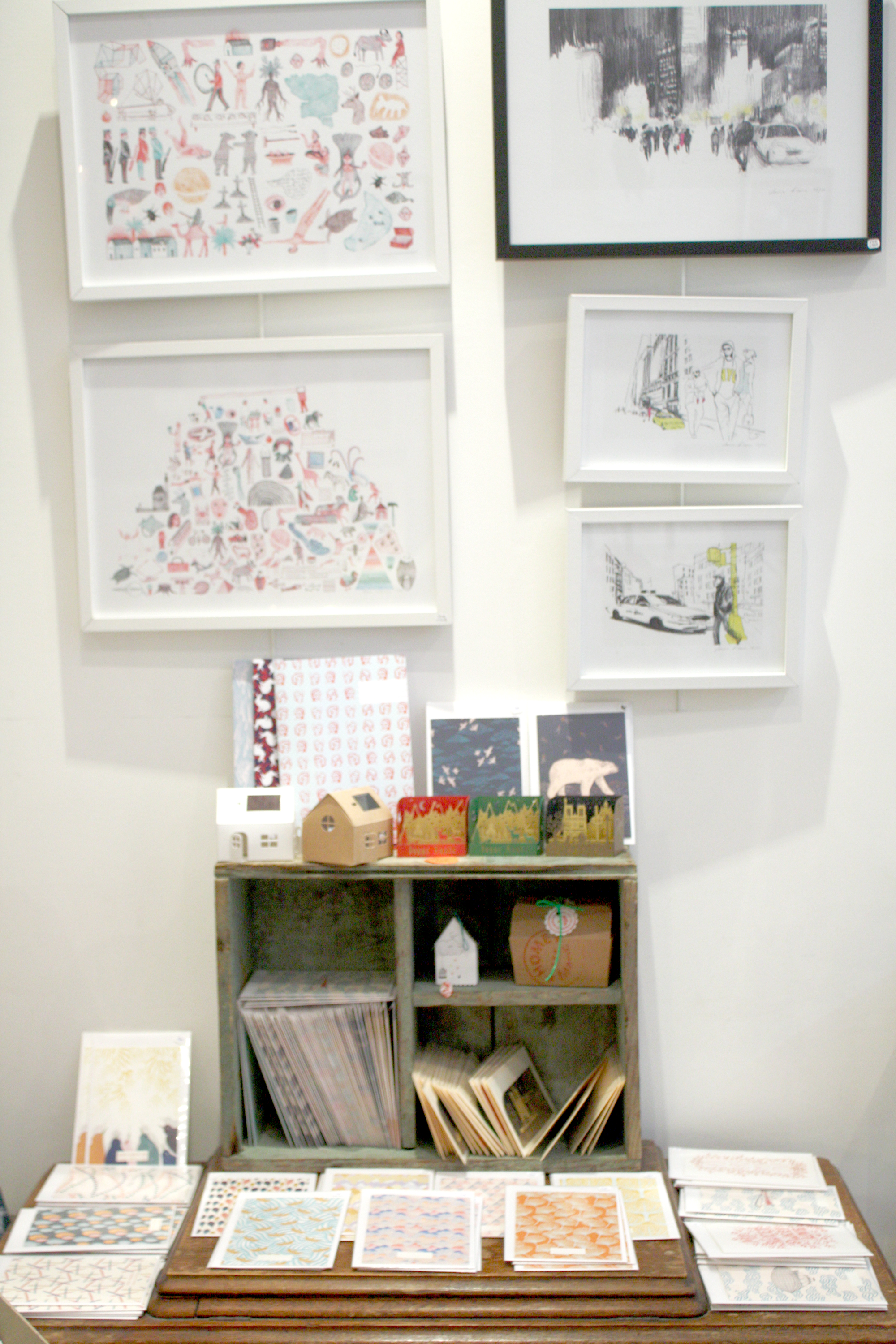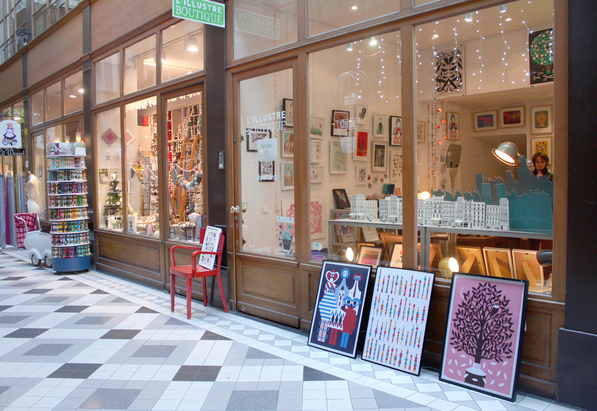 Canon cette boutique, dommage que je n’habite pas Paris ! J’aime beaucoup les 3 illustrations au premier plan sur ta dernière photo, est-ce que tu te rappelerais le nom de l’artiste ?