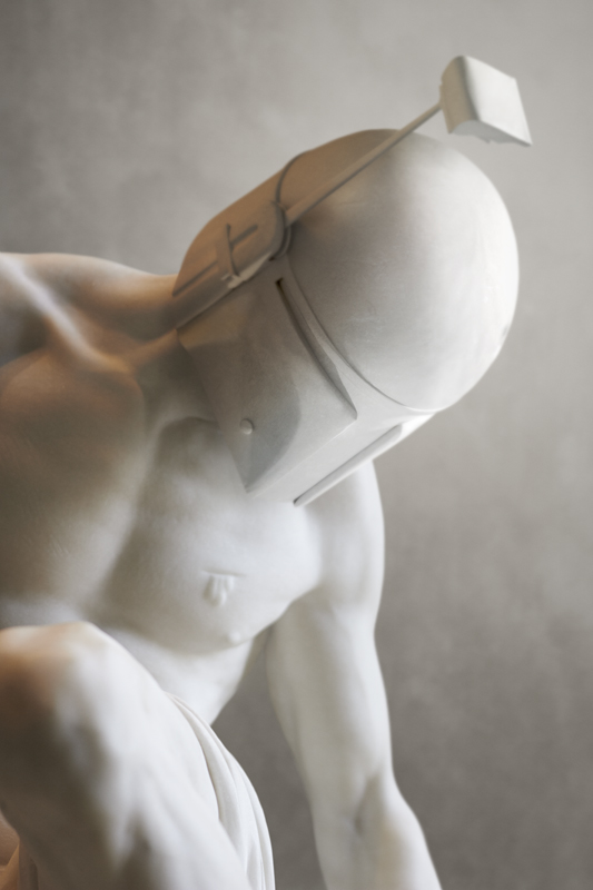 De l’artiste, je ne sais pas grand chose : tout au plus qu’il a étudié à l’école du Louvre, qu’il a choisi son pseudo en référence à deux de ses films cultes, qu’il est à la fois spécialiste de l’art de l’Antiquité et épris de culture populaire contemporaine. Et qu’il a produit cette série étonnante et hypnotique : sur le principe des êtres mythologiques mi-humains, mi-animaux, Travis Durden a crée ces statues antiques pourvues des têtes de personnages emblématiques de Star Wars. Je suis fan !