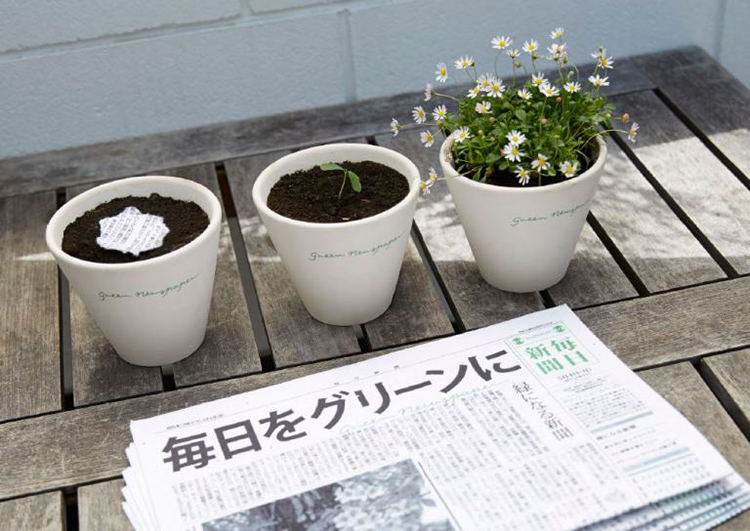 Oui oui, vous avez bien lu : lorsqu’on plante Le Mainichi, l’un des plus grands quotidiens japonais, il… fleurit ! Il suffit pour ce faire de l’émietter et de l’enfouir sous une terre légèrement humide eh hop, quelques semaines plus tard, la magie opère : roses, coquelicots, mufliers et marguerites sortent de terre. En voilà une idée qu’elle est bonne !