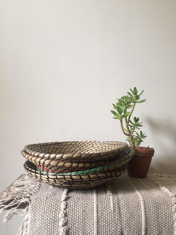 Ces jolies corbeilles africaines dénichées sur Etsy… une nouvelle fois ! Elles sont vendues par Nila Esprit Bohème et tissées à la main avec du jonc. On aime !