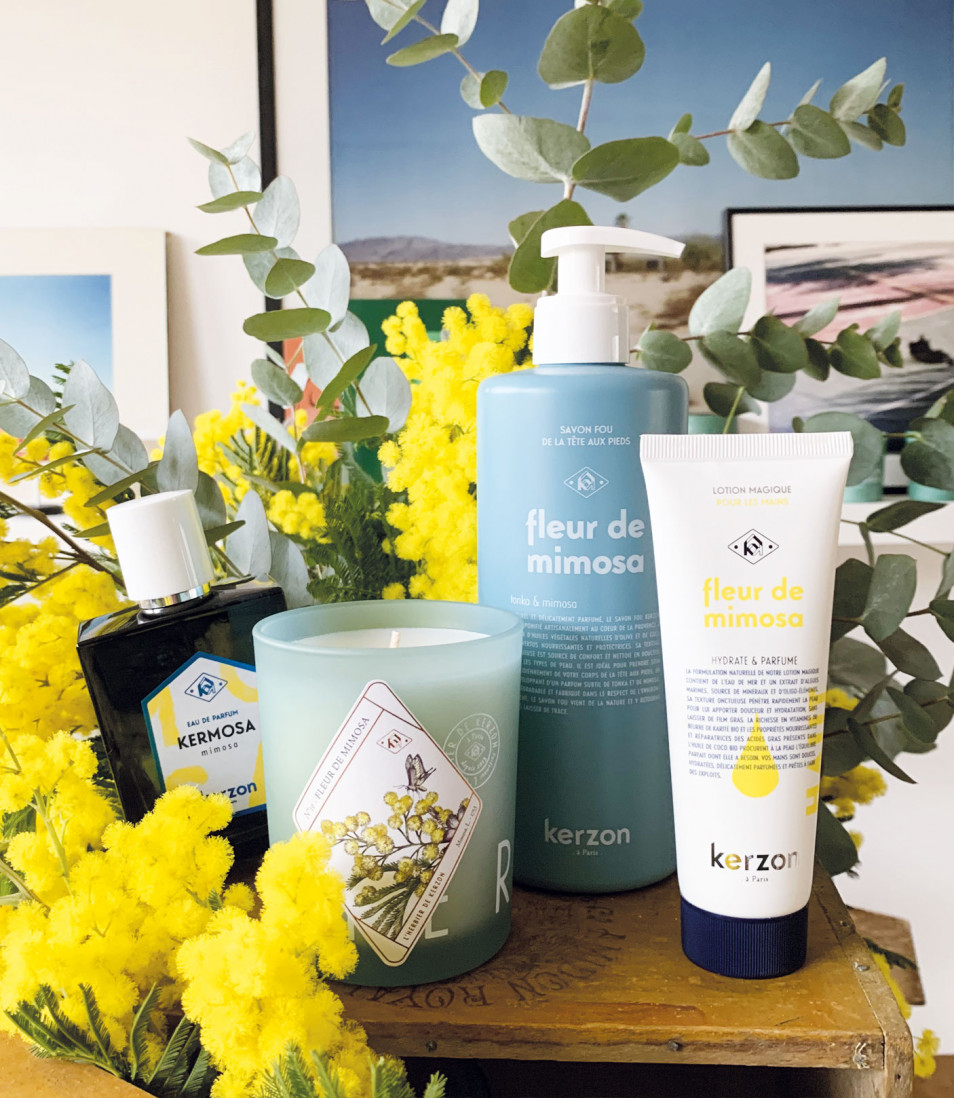 Le mimosa est l’une de mes fleurs préférées. J’aime son aspect si fragile, le côté duveteux de ses fleurs et son parfum enivrant qui, en quelques inhalations, me fait voyager vers des contrées lointaines et plus ensoleillées. Kerzon a décidé de décliner cette fleur dans une nouvelle gamme composée d’un parfum, d’une bougie, d’une lotion et d’un savon « fou ». Comme d’habitude, les packagings sont simples, efficaces et très réussis. Le petit plus ? La bougie est réalisée à partir de cire naturelle biodégradable et ça, on aime.