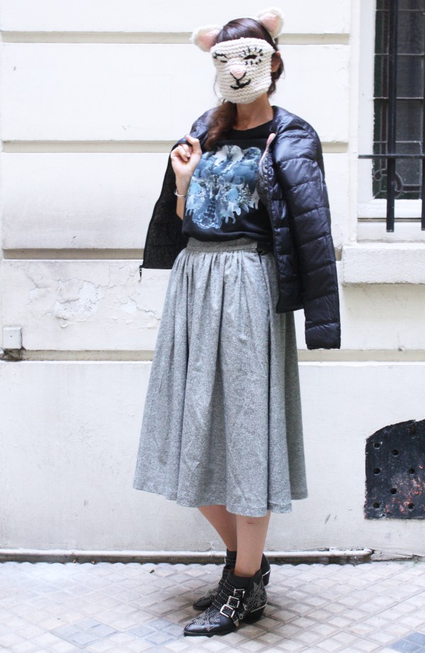 Ce sera sans moi. Je suis enceinte, donc cet hiver avec mon gros ventre, c’est plutôt une cape que je vais chercher ! Mais j’adore ta jupe !