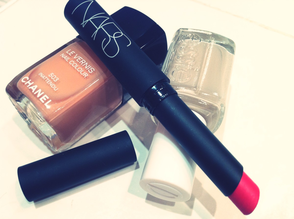 Vernis Chanel 503 Inattendu // Vernis Essie Sand Tropez // Rouge à lèvres mat Nars, Carthage
