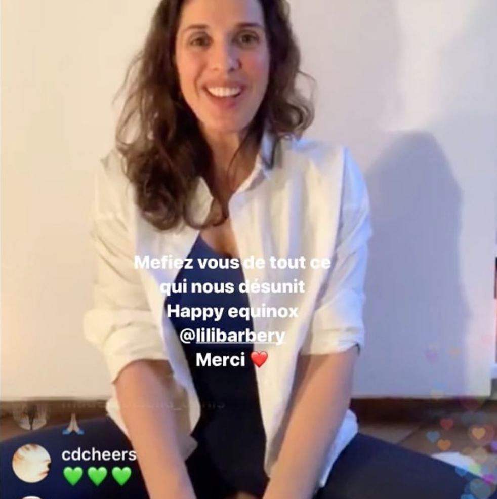 Depuis dimanche ou lundi soir, je ne sais plus, je perds le décompte des jours…!, Lili propose un RV tous les soirs à 18h, en live et gratuitement. Elle y aborde en général une thématique (la colère, la gratitude…), avant de nous entrainer dans un enchainement de mantras, respirations et gestes qui me font un bien fou !