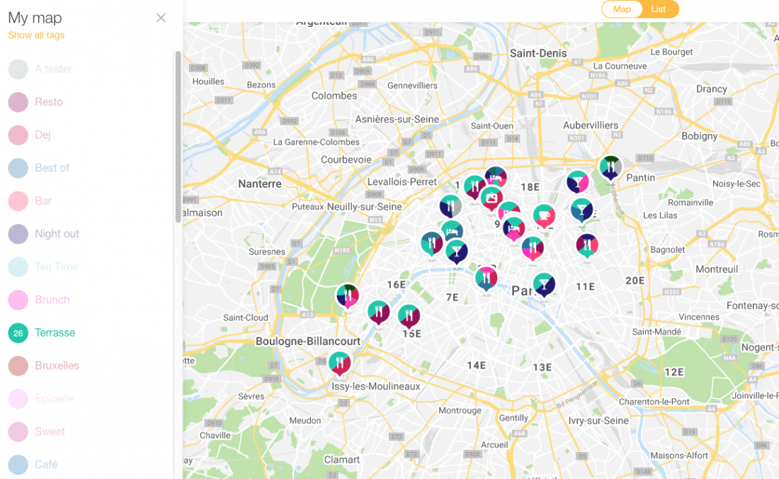 Ayééé, le printemps est bel et bien là ! Comme chaque année, j’ai compilé pour vous mes adresses de terrasses préférées. Plutôt que de vous faire un article à rallonge, je me suis dit que le plus simple était encore de vous inviter à consulter ma carte Mapstr : si vous ne connaissez pas encore l’appli (c’est mal, je vous en parle de puis au moins 2 ans !), elle est gratuite, elle permet de consigner ses adresses préférées dans le monde entier, d’y apposer des tags pour s’y retrouver plus facilement et enfin, de consulter la carte de vos amis, soit en vous connectant via Facebook, soit en recherchant leur nom directement depuis l’appli. Mon blase à moi sur Mapstr est, sans surprise, deedeeparis 🙂