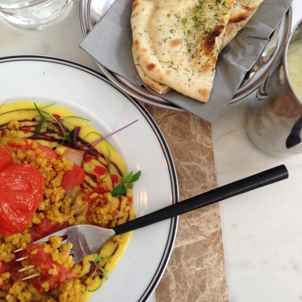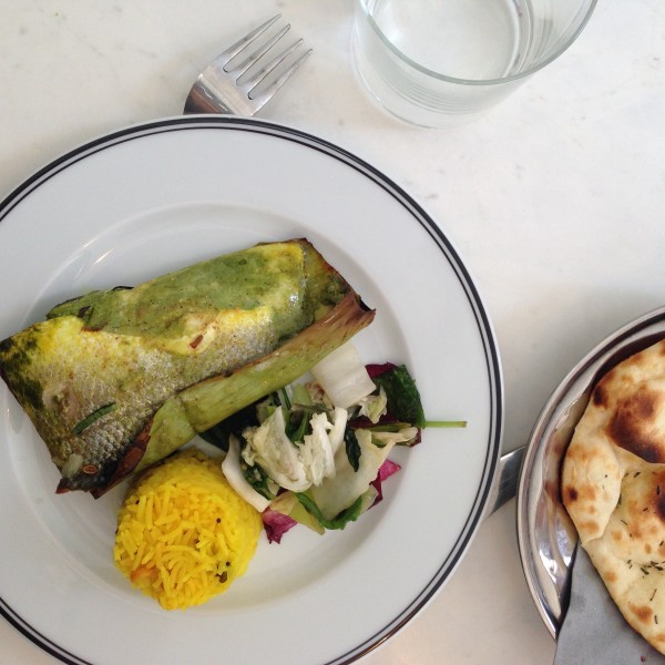 La carte n’est pas très étoffée, mais elle offre ce qu’il faut d’exotisme mâtiné d’excellence : le butter chicken curry et son riz pulao est dément, autant que le bar en feuille de bananier. La tomate coeur de boeuf farcie de couscous aux épices et raisins secs est généreuse et savoureuse à souhait. Testé et approuvé deux fois en mode pause déjeuner !