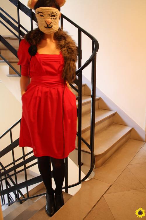 Adorable que cette petite robe ! Je préfère sans le petit col par-dessus. Son rouge est parfait !