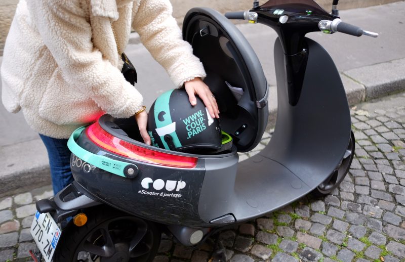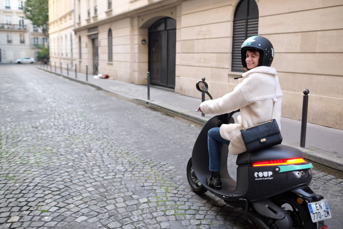 J’ai aimé le fait que les COUP soient relativement près de l’endroit où on souhaite les louer : il y en a aujourd’hui environ 600 dans Paris. Bien vu aussi le look du scooter et du casque, élégants et pas trop tape-à-l’oeil.