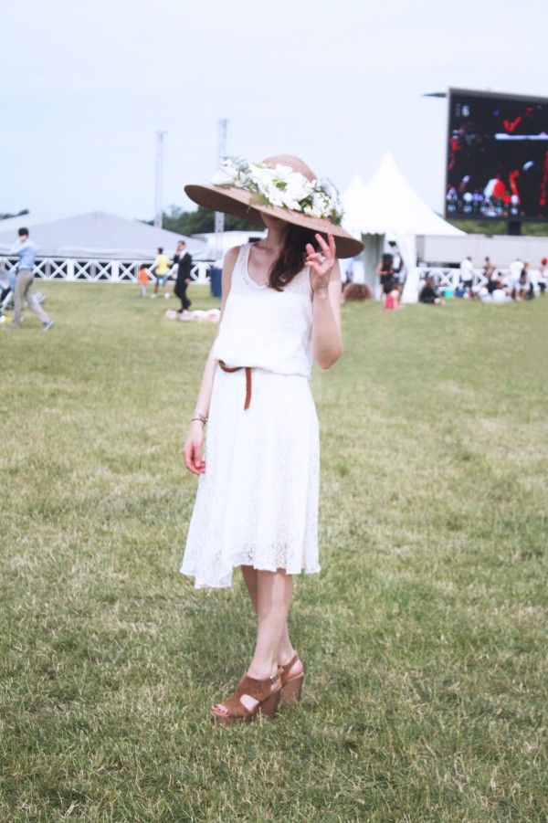 vraiment, j’adore l’ensemble robe blanche-chaussures daim-chapeau et l’harmonie des couleurs!