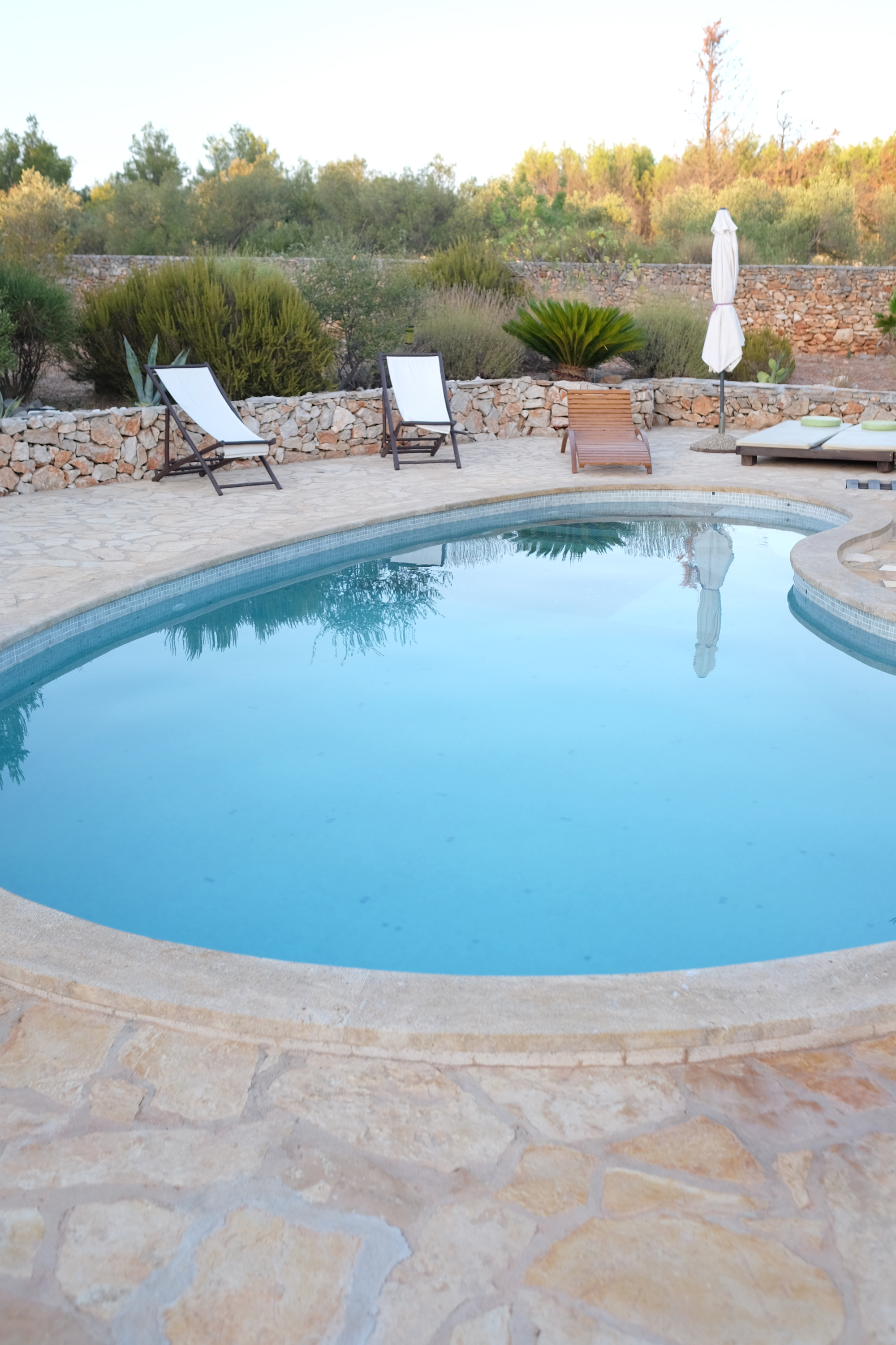 Pourtant.. Je suis tombée amoureuse de cette bergerie perdue au milieu de vignes millénaires : la maison offre un très beau terrain, avec un coin parfait pour chiller sous les arbres, un livre à la main, une jolie piscine (rare sur l’île, je rappelle), des champs à perte de vue… Alors oui, c’est vrai, le confort est peut être sommaire et la déco à revoir, mais l’extérieur m’a séduite.