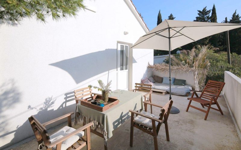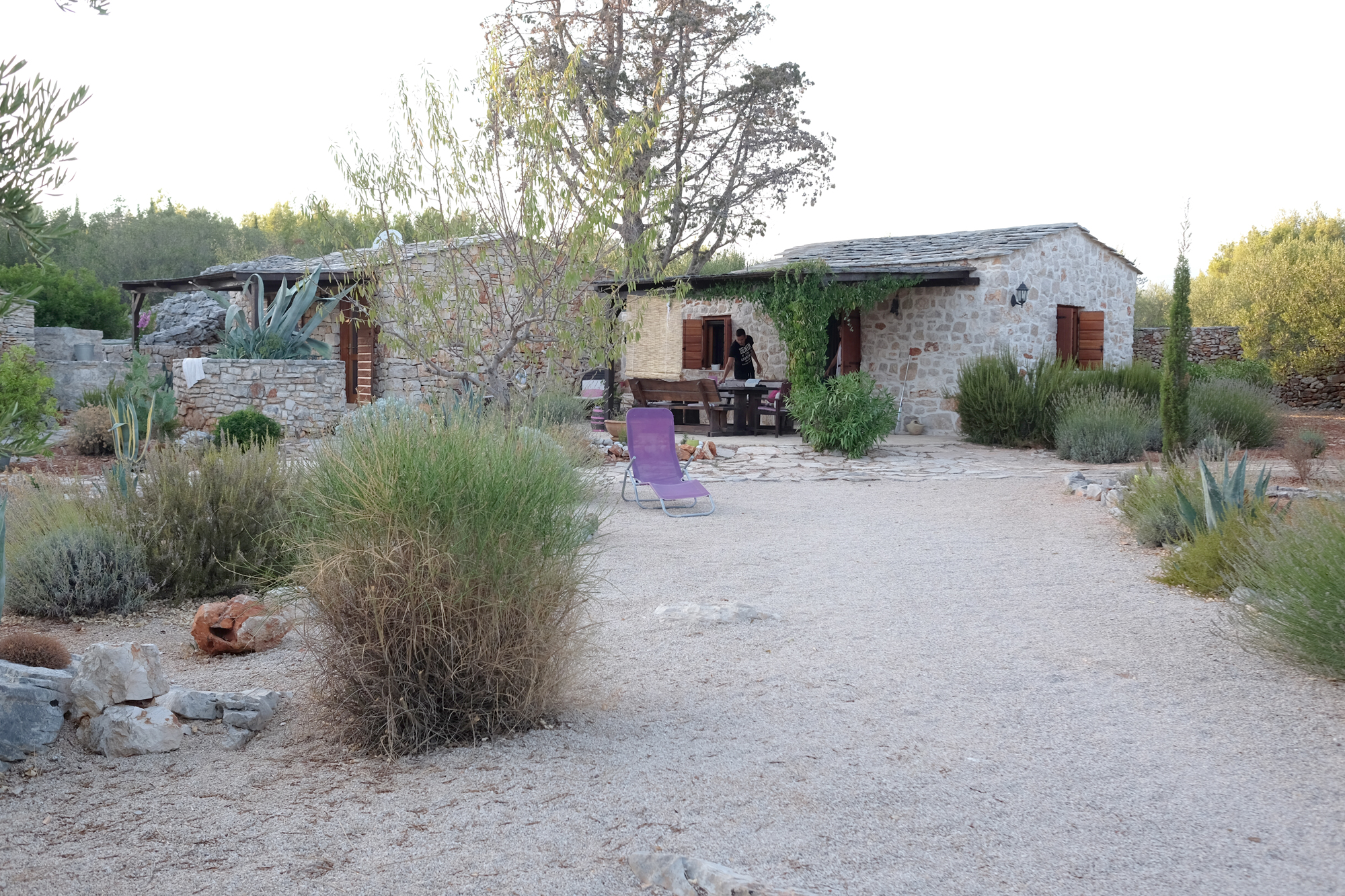 Pardon de radoter, mais j’ai passé un dimanche entier à chercher un logement sur l’île, plutôt vers Stari Grad. En vain. C’est dire si j’étais heureuse que Vera, la mère croate de mon amie, trouve cette petite pépite où nous avons passé 15 jours : un petit appartement, le Two Suns, qui offre un confort parfait et à la déco soignée juste ce qu’il faut. Maya, la propriétaire, et son mari sont d’une gentillesse exquise, de vraies pépites : nous avons eu le droit à plusieurs paniers de fruits et légumes du jardin pendant le séjour, en plus des nombreux conseils pour arpenter l’île et des mini produits de beauté bio laissés à notre attention dans le studio. Des amours !