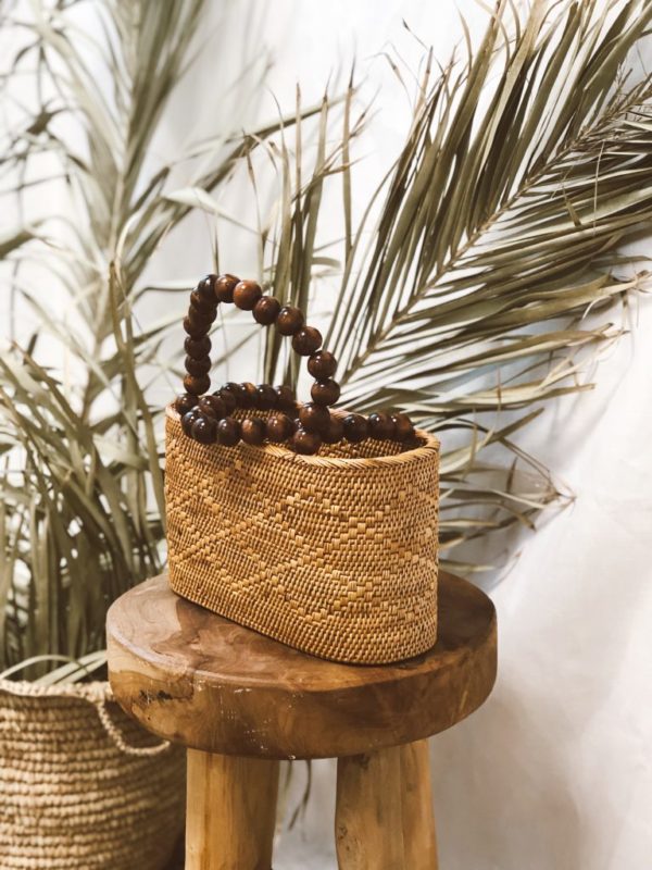 - Panier ajouré Pepyth en osier entièrement réalisé, tissé et fumé à la main dans un petit village balinais
