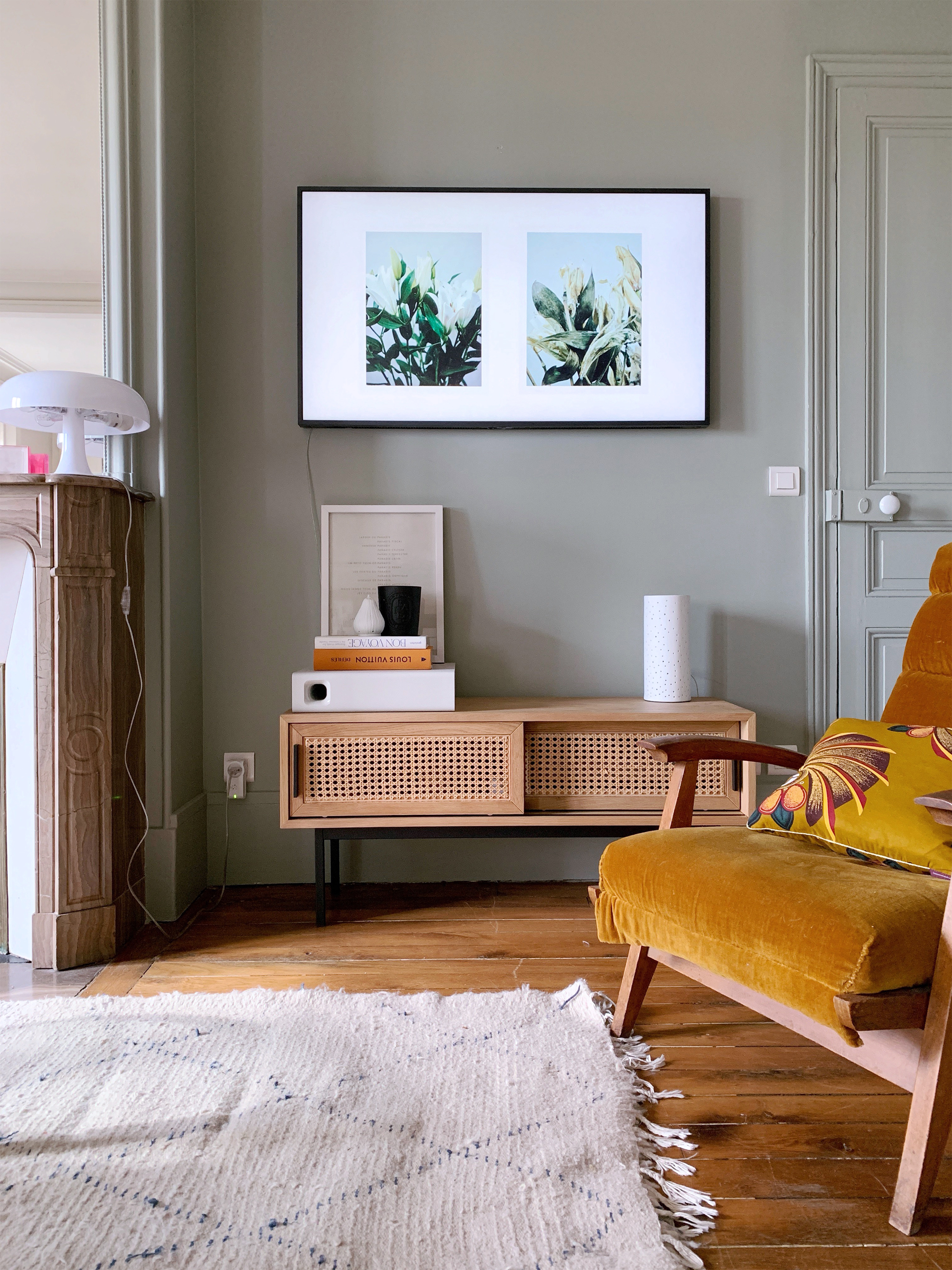 - Télé : The Frame de Samsung. On a choisi le modèle 49″. Tous les modèles sont en promo en ce moment sur le site de la Fnac (just sayin !).