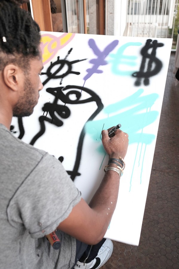 Sur le palier du 5ème, je retrouve Mylène, l’attachée de presse la plus cool de l’univers. Je me détends d’au moins 1%. On pousse la porte de l’appartement. Une dizaine de personnes sont là, occupées à taguer les murs, discuter, rire. Je me détends encore d’un bon 4%. Raphaël est là, on migre vers le joli balcon (détente +2%), et on commence à discuter Mylène, Raphaël et moi. De tout, de rien. De lui : sa carrière, ses envies, ses inspirations et ses projets.