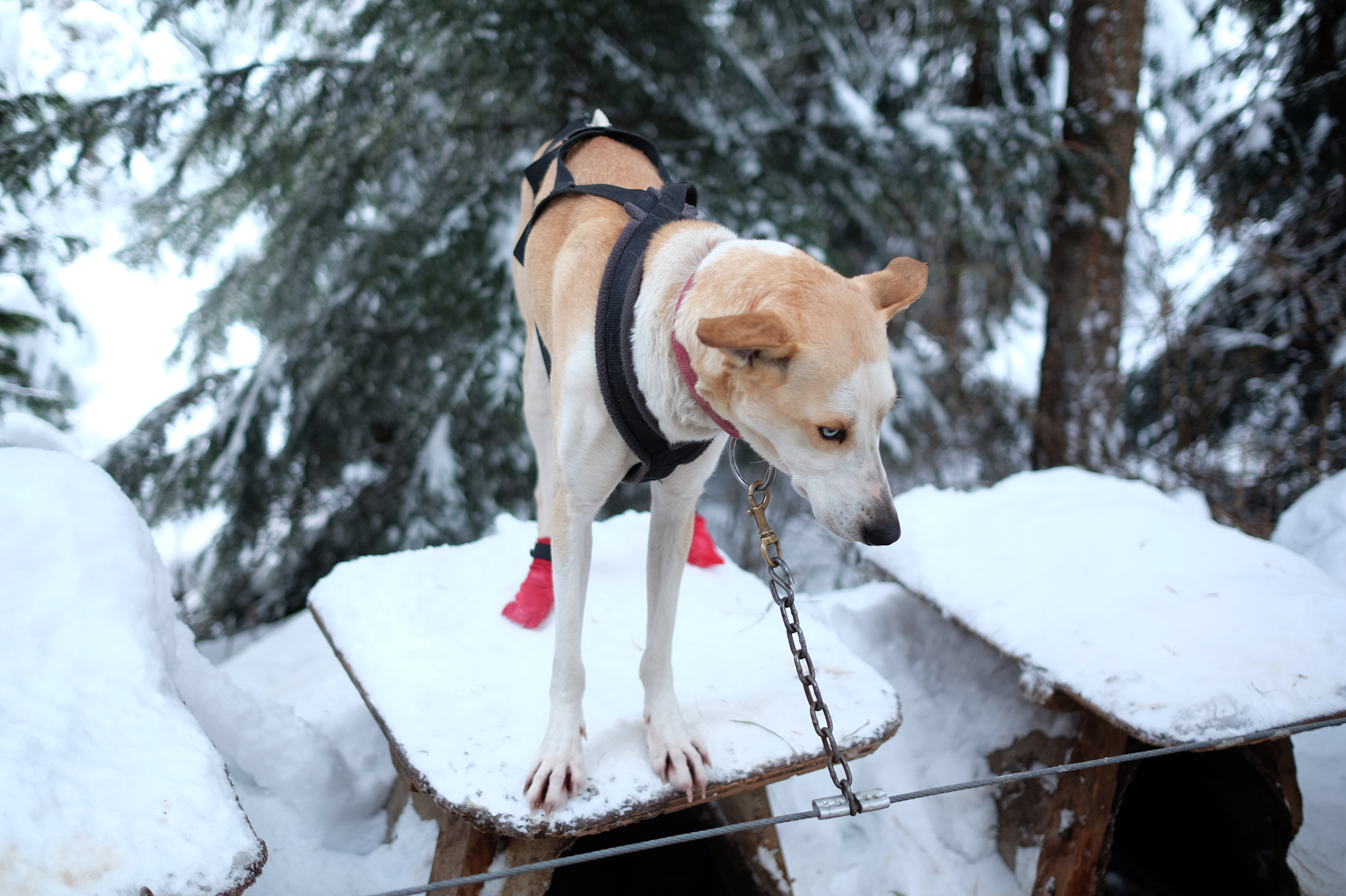 De loin l’activité que j’avais le plus hâte de faire… Je ne le regrette pas ! La sortie était organisaée par Canadian Wilderness Adventures Ltd : nous sommes partis avec un tout petit groupe à une demi-heure de Whistler. Sur place, nous sommes en plein milieu de nulle part où trône une maisonnette et un immense chenil. On entend les glapissements des chiens qui vont être nos guides pour l’heure qui va suivre.