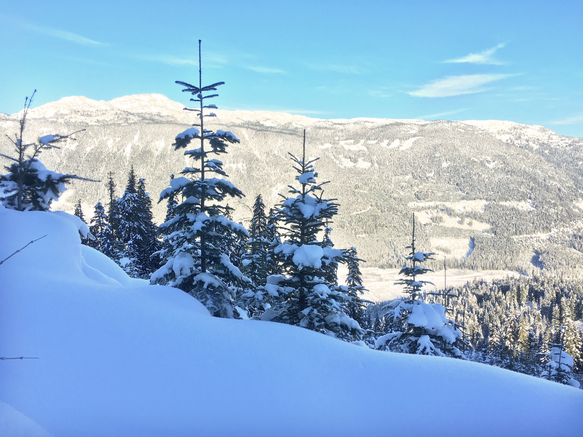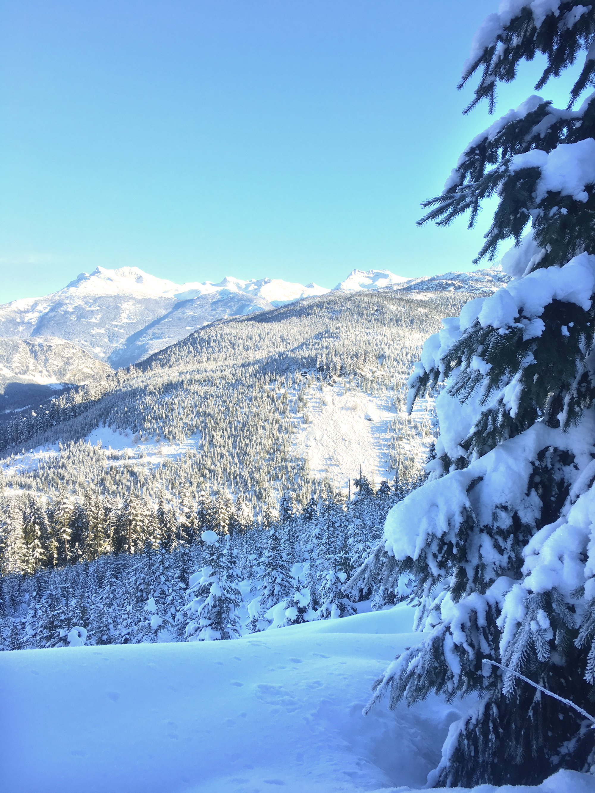 Les rares fois où je suis allée au ski depuis ma toute première fois à 15 ans (hier, donc), je suis toujours allée dans les Alpes. L’année dernière, j’étais par exemple à Courchevel où j’ai pu tâter une neige incroyable et profiter de paysages qui ne l’étaient pas moins. Pourtant, à côté de Whistler… les Alpes font presque pâle figure ! Pour la première fois de ma vie, j’ai été prise d’un vertige horizontal face à l’immensité de ces paysages enneigés et au silence étourdissant qui nous entoure dès que l’on sort du village.