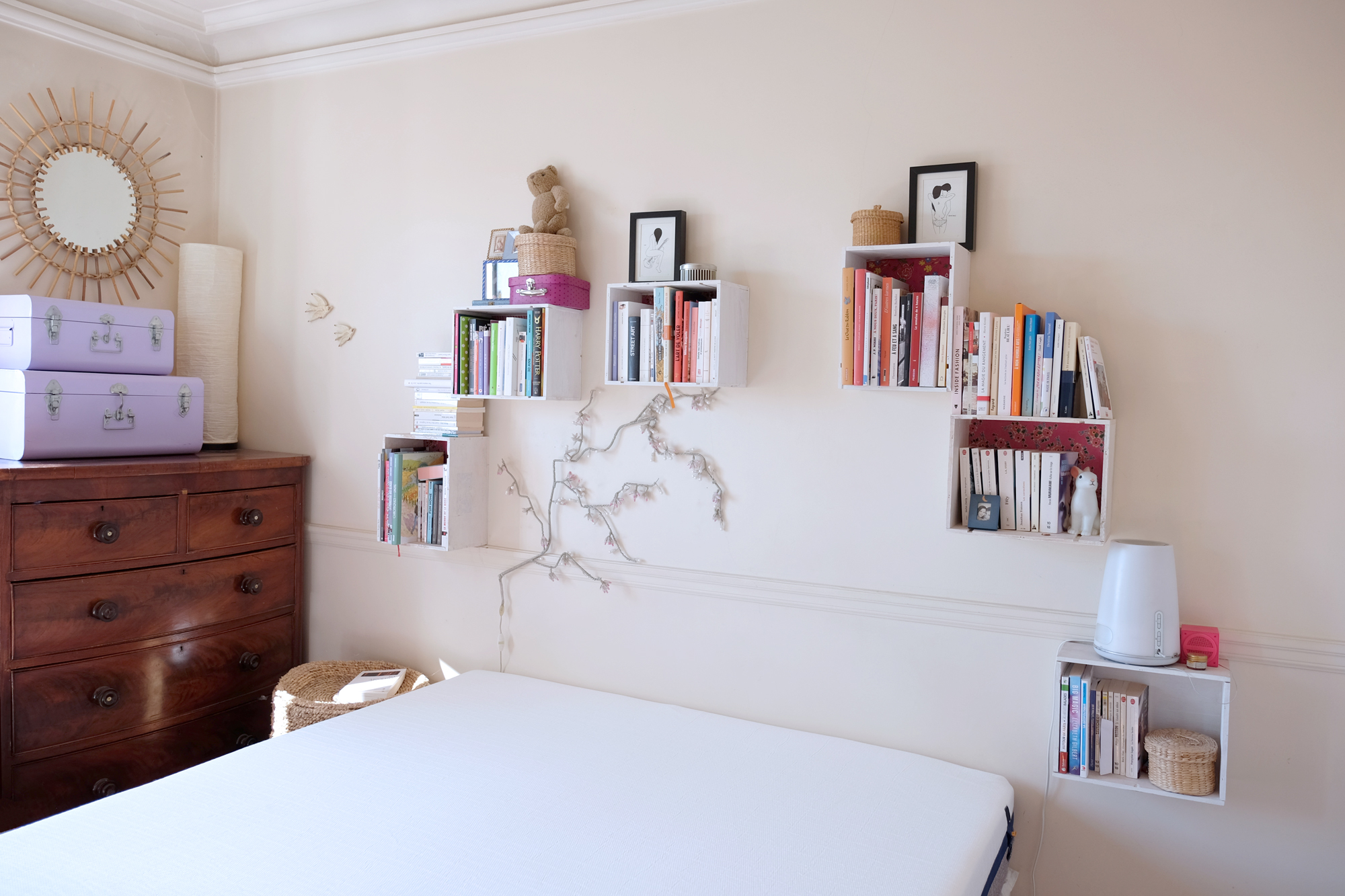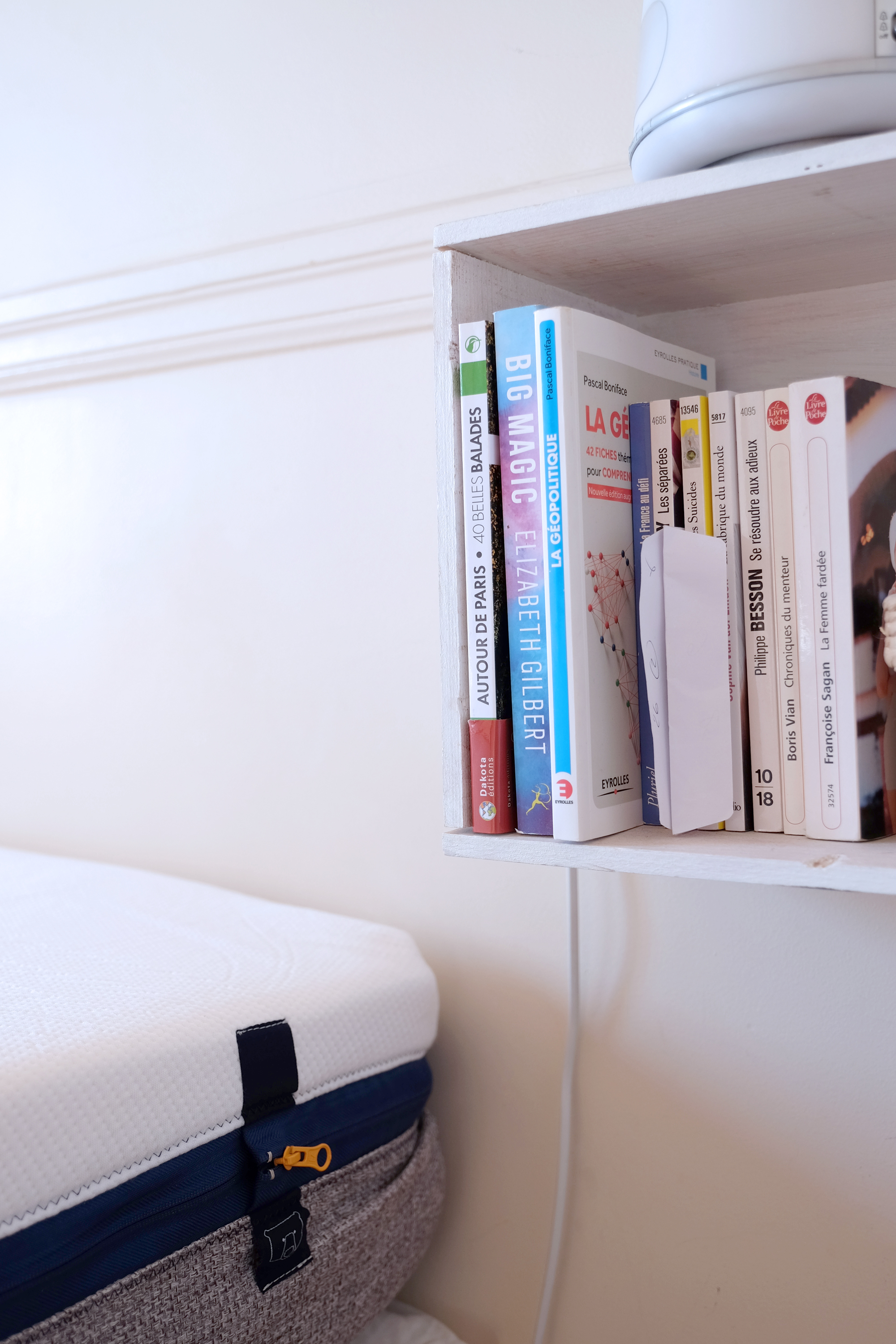 Côté chambre, elle a toujours été le parent pauvre de notre appartement… il faut dire que c’est une sorte de placard géant avec, au milieu, un lit. Ça n’aide pas à en faire un nid douillet, pour sûr. Avant de nous attaquer à un petit lifting de circonstance, on a commencé par changer l’essentiel dans cette pièce : le lit. Nous nous étions offert le notre il y a plus de 12 ans : un lit de compet dans lequel je dormais comme un bébé. C’est dire si j’ai hésité à accepter la proposition de Tediber de nous offrir un lit pour que nous puissions l’essayer.