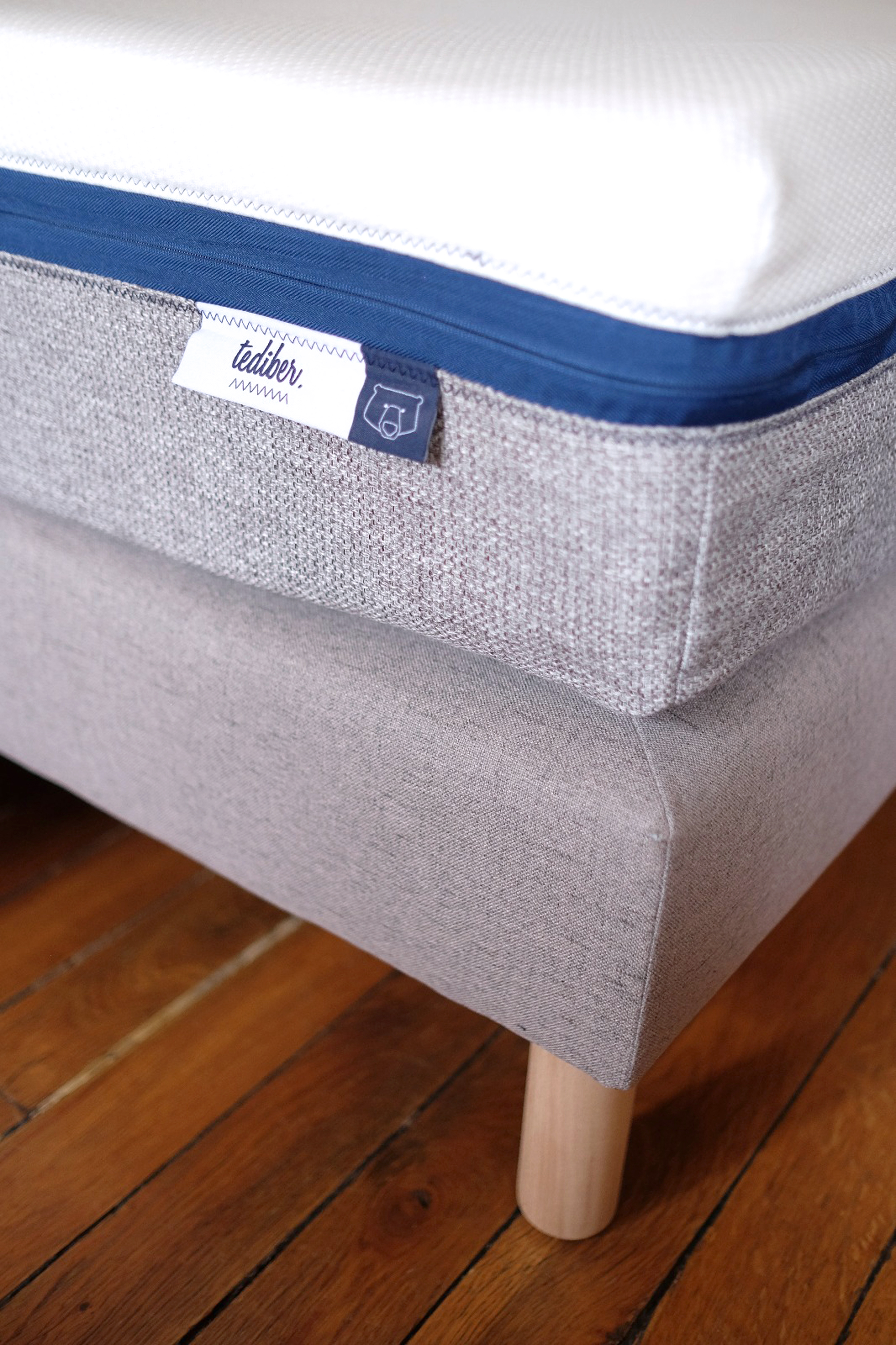 Autre point qui m’a séduite, Tediber est une marque engagée environnementalement et socialement parlant : les matelas sont conçus avec des composants non-nocifs et à faible impact sur l’environnement : les mousses et tissus sont certifiés OEKO-Tex Standard 100, hypoallergéniques (ce qui veut dire qu’ils n’ont subi aucun traitement chimique), labellisés Certipur. Le latex est à 20% d’origine naturelle, la colle utilisée est sans COV et à base d’eau. Les produits Tediber sont produits en grande partie à la main, en Belgique. La livraison dans Paris intramuros se fait à vélo. Enfin, les matelas retournés en bon état sont donnés à Emmaüs Défi.