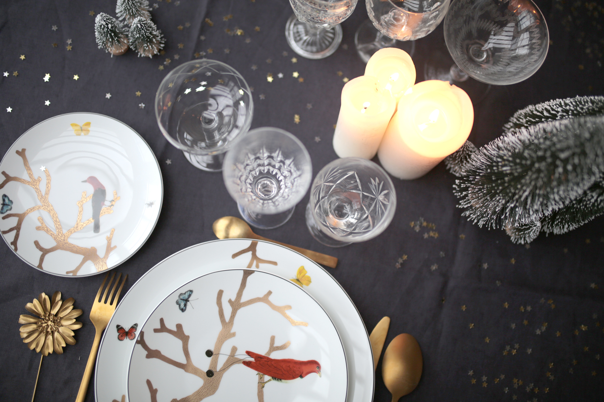 Assiettes : Bernardaud, collection Aux Oiseaux.
