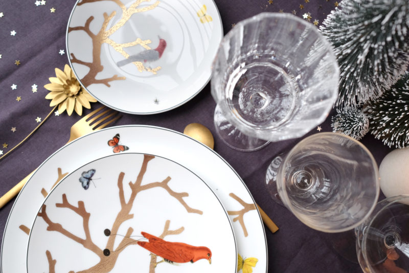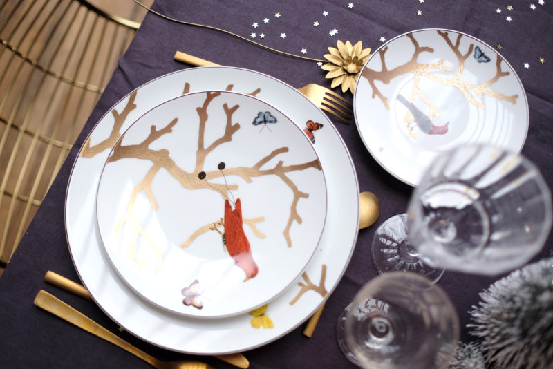 Quand on s’est mariés, monsieur a décrété qu’il fallait choisir un service de table blanc pour ne pas nous lasser de notre vaisselle. Résultat, on se coltine 2 services à la blancheur immaculée… et je ne peux plus me les voir en peinture. La chance que j’ai, c’est que j’ai du équiper le bureau pour les dîners and co. Sans surprise, j’ai jeté mon dévolu sur un service bien coloré ! Celui que j’ai vient de chez Bernardaud, modèle « Aux Oiseaux », mais on en trouve évidemment des moins poussés en terme de savoir-faire et donc moins dispendieux un peu partout, même si vous avouerez que ces assiettes à elles-seules donnent le ton de cette table de fêtes !