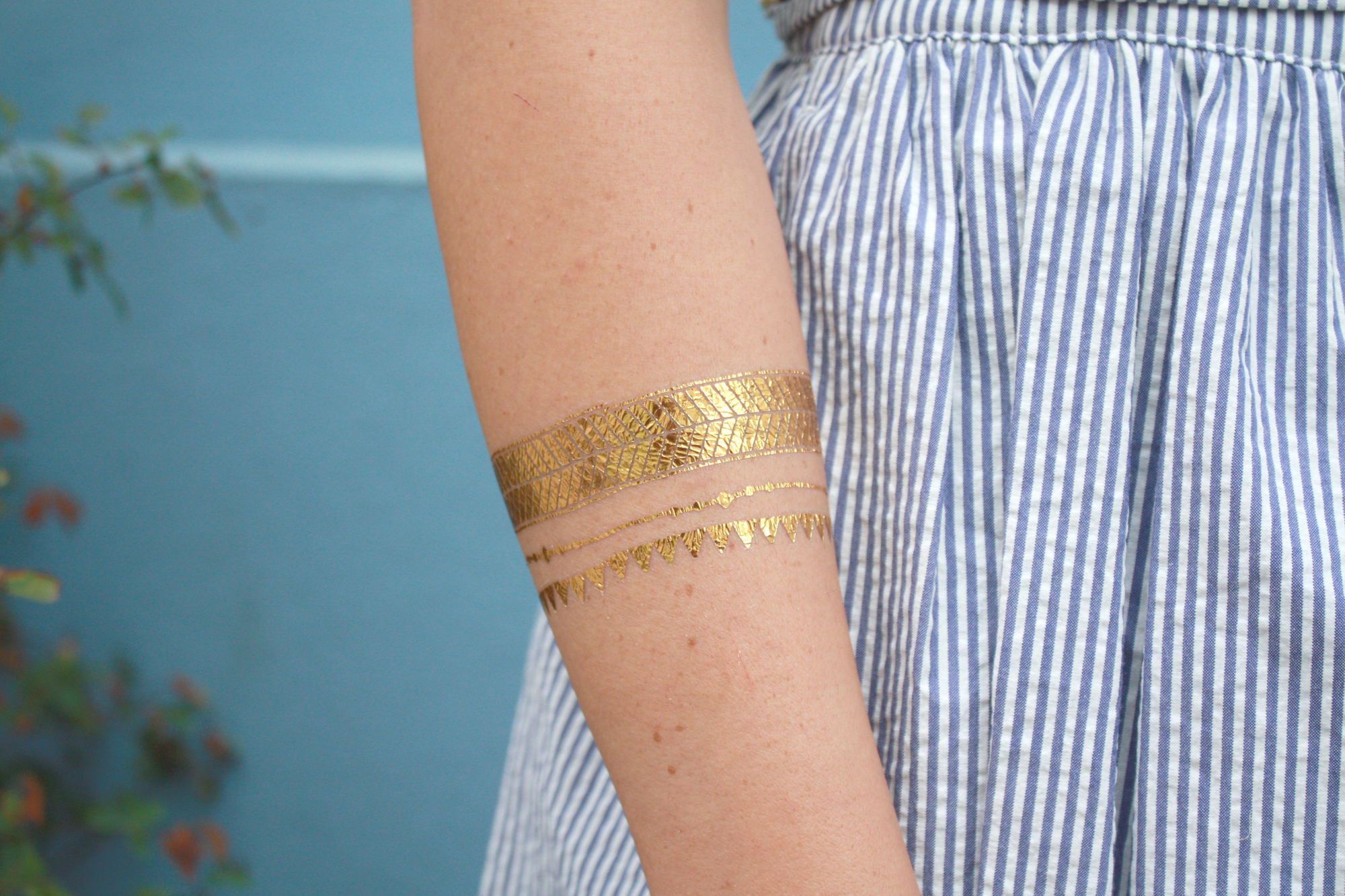 J’aime beaucoup ces nouveaux tatouages dorées, c’est super pour l’été. Je m’en suis pris des Flash Tattoos, ils sont géniaux.