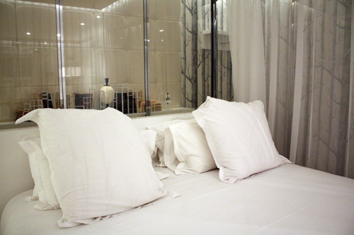 J’ai été un peu moins séduite par cette suite que j’ai trouvé un peu trop chargée, je l’avoue. Mais après tout, pourquoi pas : le canapé rempli de coussins, l’alcôve sur le mur, le lit rond plairont peut être aux amoureux en quête d’un écrin acidulé !