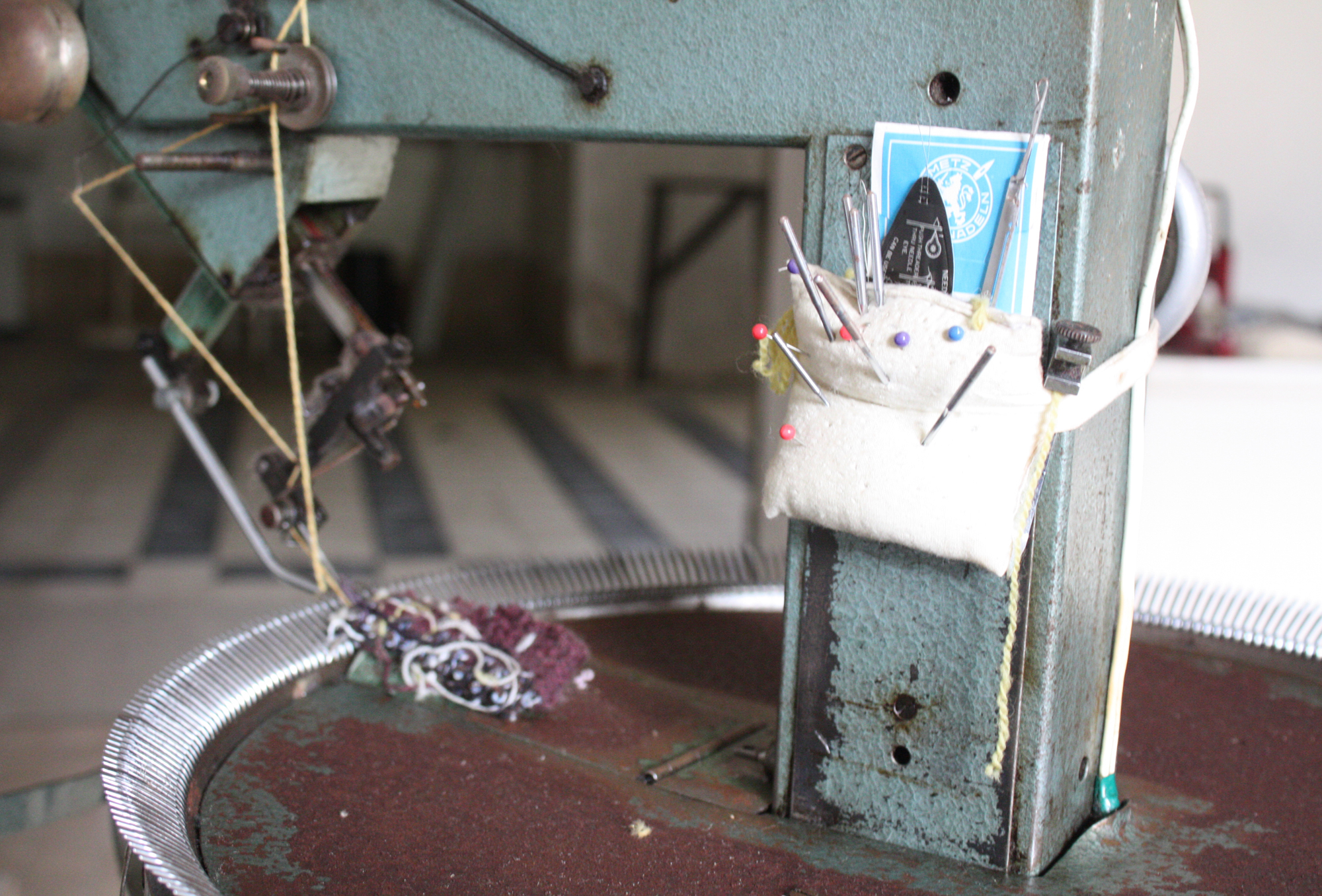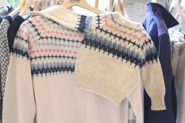 Cette marque, je la connais depuis quelques temps, maintenant. J’ai toujours aimé cet esprit vintage et rock à la fois, l’excellence des matières, des coupes. Une excellence qui prend tout son sens lorsqu’on découvre le fief de la marque où sont installés les bureaux, qui recèlent un trésor inestimable : coupons de tissus, « rebracks » – des échantillons de tricot -, croquis, carnets de tendance, vieux métiers et machines à tisser… ce sont des années de travail qui sont scrupuleusement archivées et utilisées par Alexandre pour créer de nouvelles collections mâtinées de ce parfum d’antan remis au goût du jour.