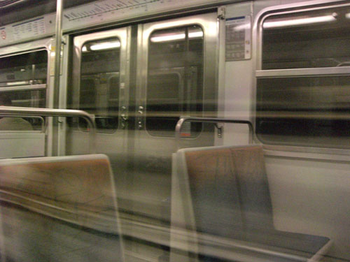 Malgré tout, j’aime infiniment cette idée de vitesse qui saisit indéniablement le regard, et pour cause . J’aime la tole des portes qui ressort, et surtout, j’aime le métro presque vide : j’ai tellement l’habitude de le prendre lorsqu’il y a déjà 150 000 autres personnes dans le même wagon (aucune exagération bien-sûr !) que c’est un vrai bonheur de le voir ainsi. Quand on est à deux, parce que seule, j’aurais indéniablement moins savouré cette ambiance solitaire, cela va de soi.