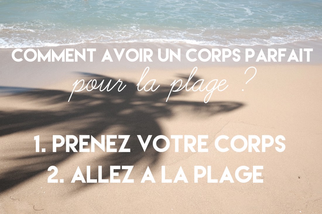 Je crois qu’aucune de nous n’aime son corps. Je suis sûre que même les mieux foutues d’entre nous trouvent toujours quelque chose à redire sur son corps. Je crois que c’est dans nos gênes. On ne peut pas s’empêcher de se comparer aux autres. Le pire pour moi, c’est à la plage! Il faut toujours que la plus bombasse de la plage s’assoit à côté de toi! C’est comme si elle était née pour te narguer haha! Bref, je dis chaque année que je vais prendre la bonne résolution de m’aimer, de m’accepter comme je suis. Et puis chaque étés, les magasines, Instagram, nous mitraille de de photos de filles aux abdos et fesses bien formées et fermes, et chaque année, je me dis donc que je vais me mettre au sport, en vain bien sûr^^ La bonne bouffe prend toujours le dessus sur les abdos et les squats. Seul le running semble persister ^^ C’est déjà pas mal tu me diras 🙂