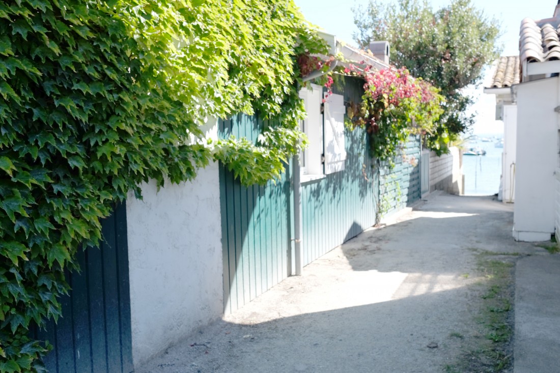 Du Canon, j’ai aimé ces jolies petites ruelles bordées de maisonnettes toutes de bois vêtues. J’ai aimé les couleurs, vives, parfois un peu clinquantes mais toujours réjouissantes, et les casiers, tables métalliques et autres outils de pêche qui essaiment au coin des ruelles. J’ai aimé ce café, à deux pas de la plage, où boire un p’tit verre en regardant passer la vie, si douce à cet endroit précis. J’ai aimé le sable qui tient lieu de pavé, et le bassin que l’on aperçoit à chaque intersection.