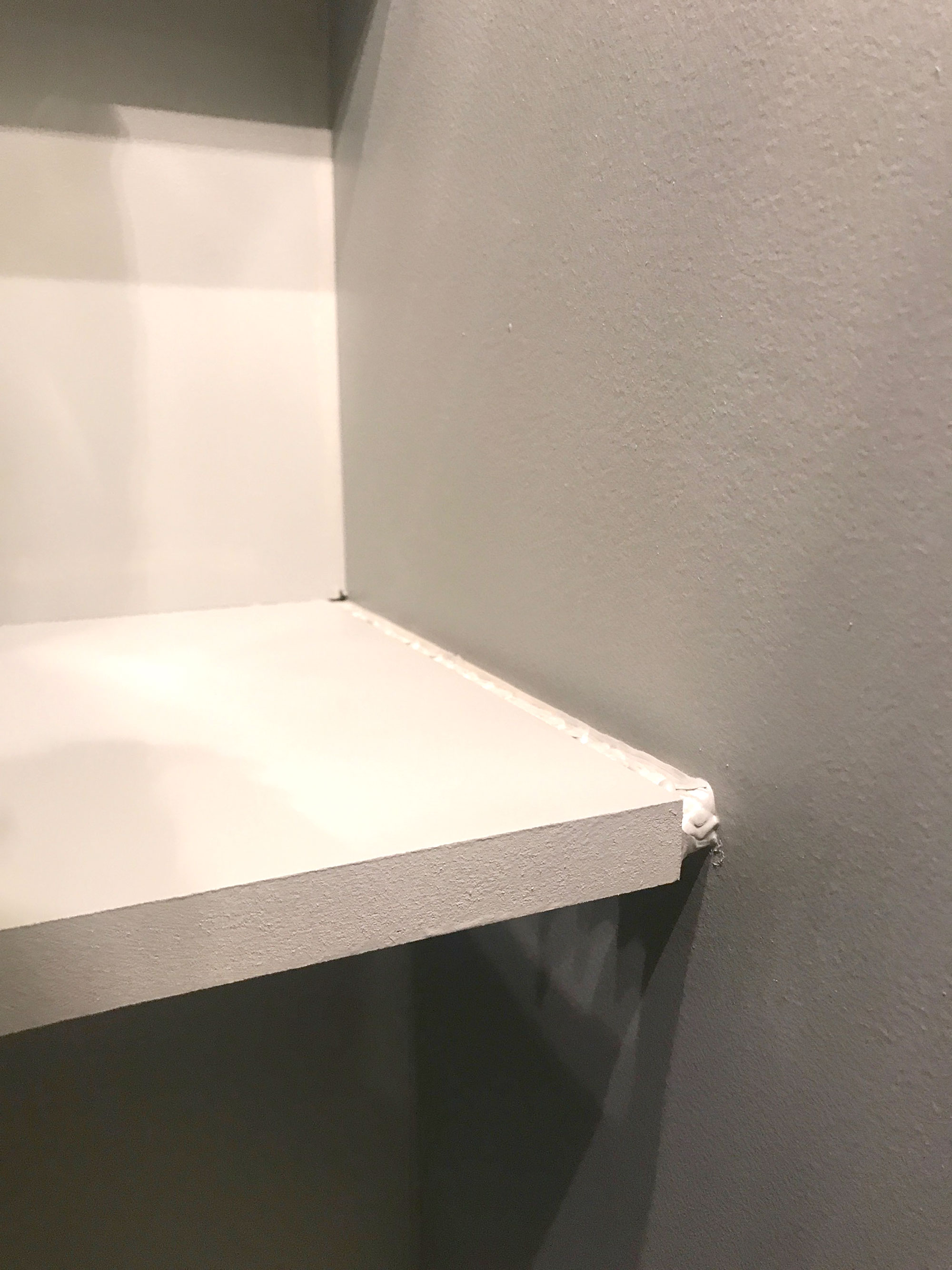 Une fois que vous avez terminé, vous pouvez reboucher les éventuels interstices entre le mur et les tablettes ou entre les tablettes entre elle avec le joint acrylique à la pompe. Selon la finition que vous souhaitez, vous pouvez aussi prévoir de masquer le trou des vis avec du joint acrylique.