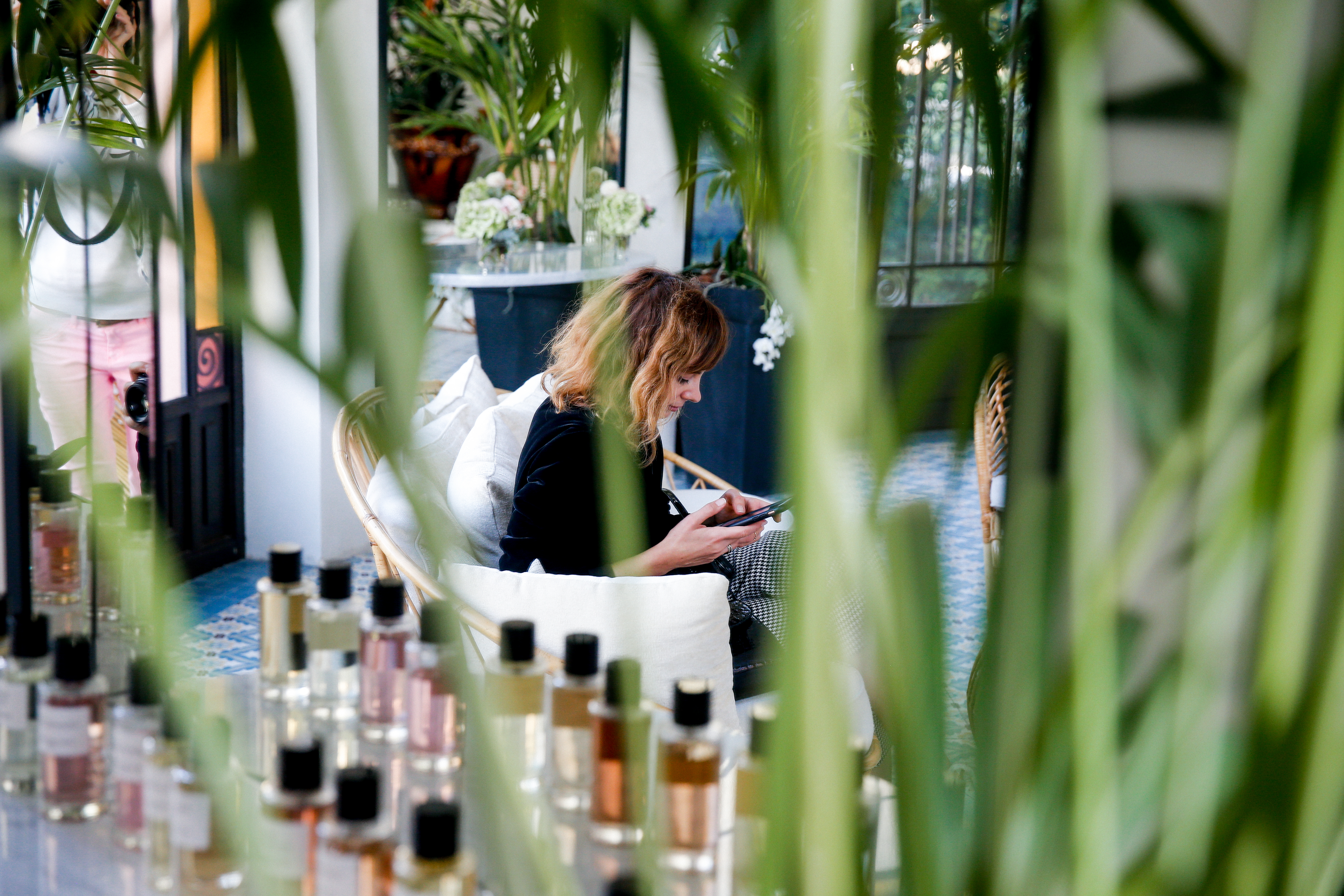 Installées au cœur de Grasse, le berceau mondial de la parfumerie, les Fontaines Parfumées sont, si on veut faire une métaphore peut-être un peu abrupte, une sorte de bureau : celui des « Nez » des maisons Christian Dior, François Demachy, mais aussi Jacques Cavallier-Belletrud, celui de Louis Vuitton (oui, les deux maisons appartenant au même groupe). Elles sont ainsi entièrement dédiées à la création des parfums et fédèrent l’ensemble des savoir-faire qui lui sont liés, de la fleur jusqu’au flacon. Ce jour là, nous avons ainsi pu visiter cet écrin d’exception et qui revient de loin : la bastide tricentenaire avait été laissée à l’abandon depuis les années 1970. Quatre années de recherches patrimoniales et une année de travaux réalisés par des artisans et compagnons locaux ont été nécessaires pour qu’elle soit de nouveau sur pied !