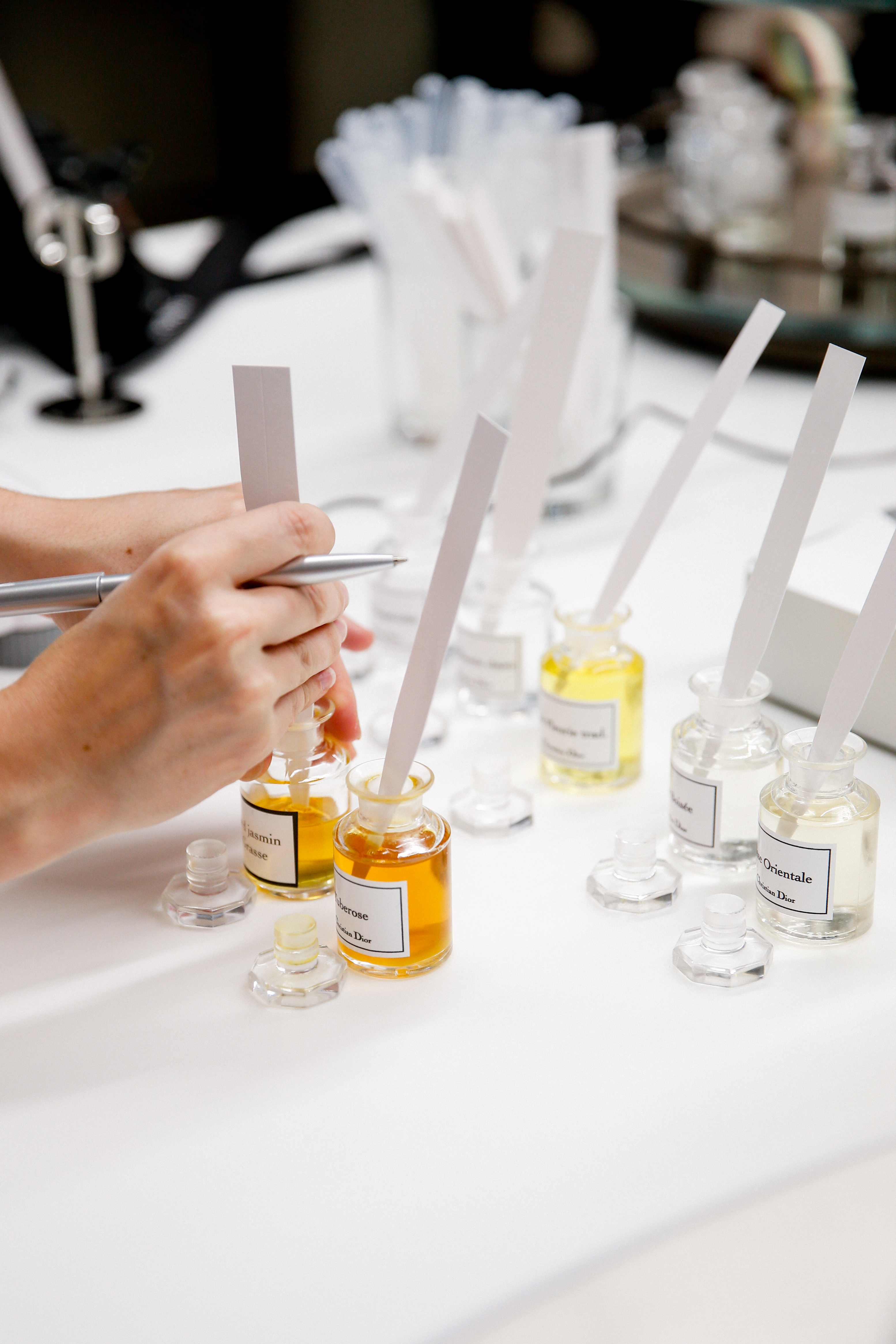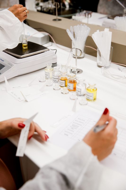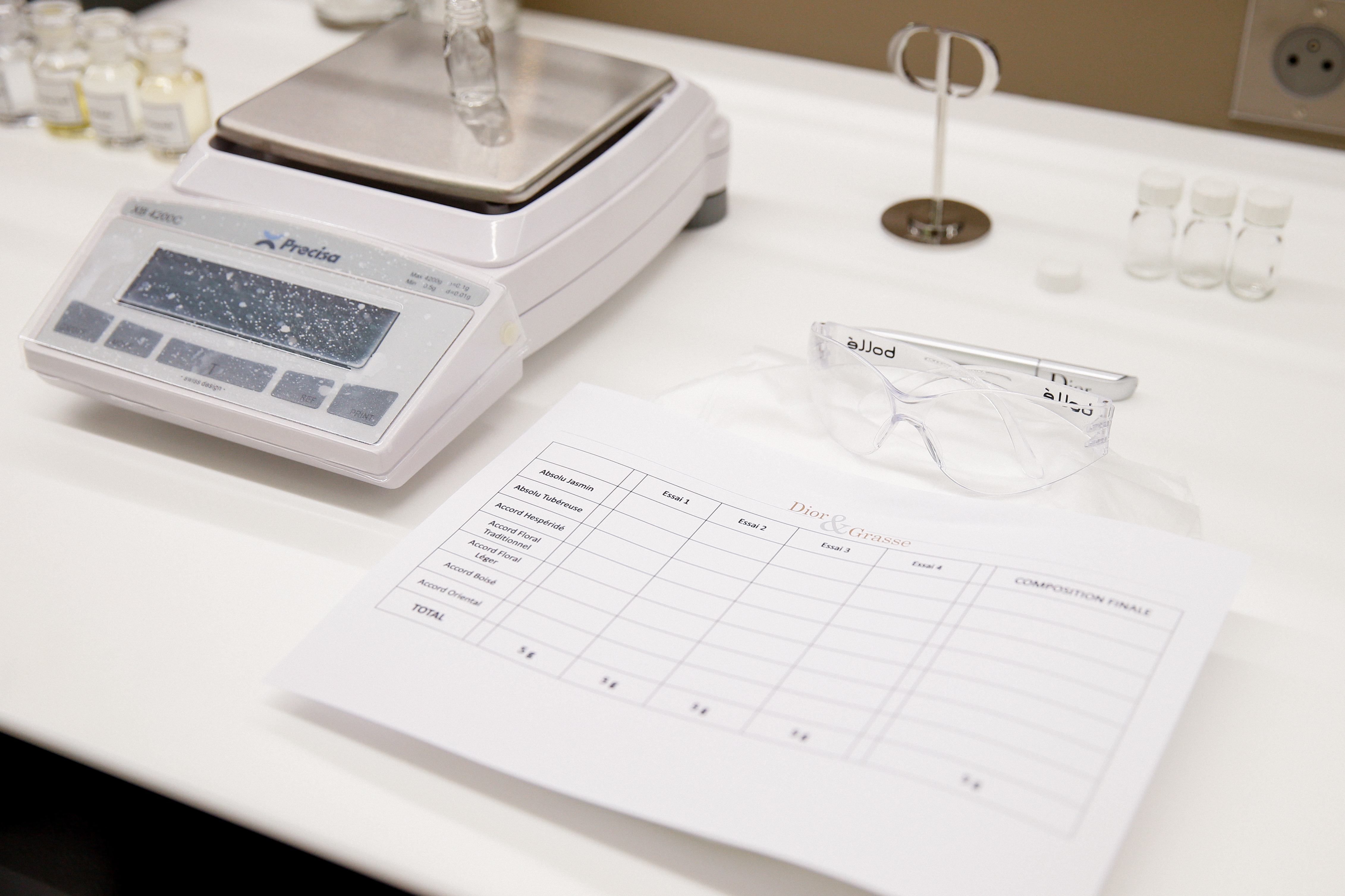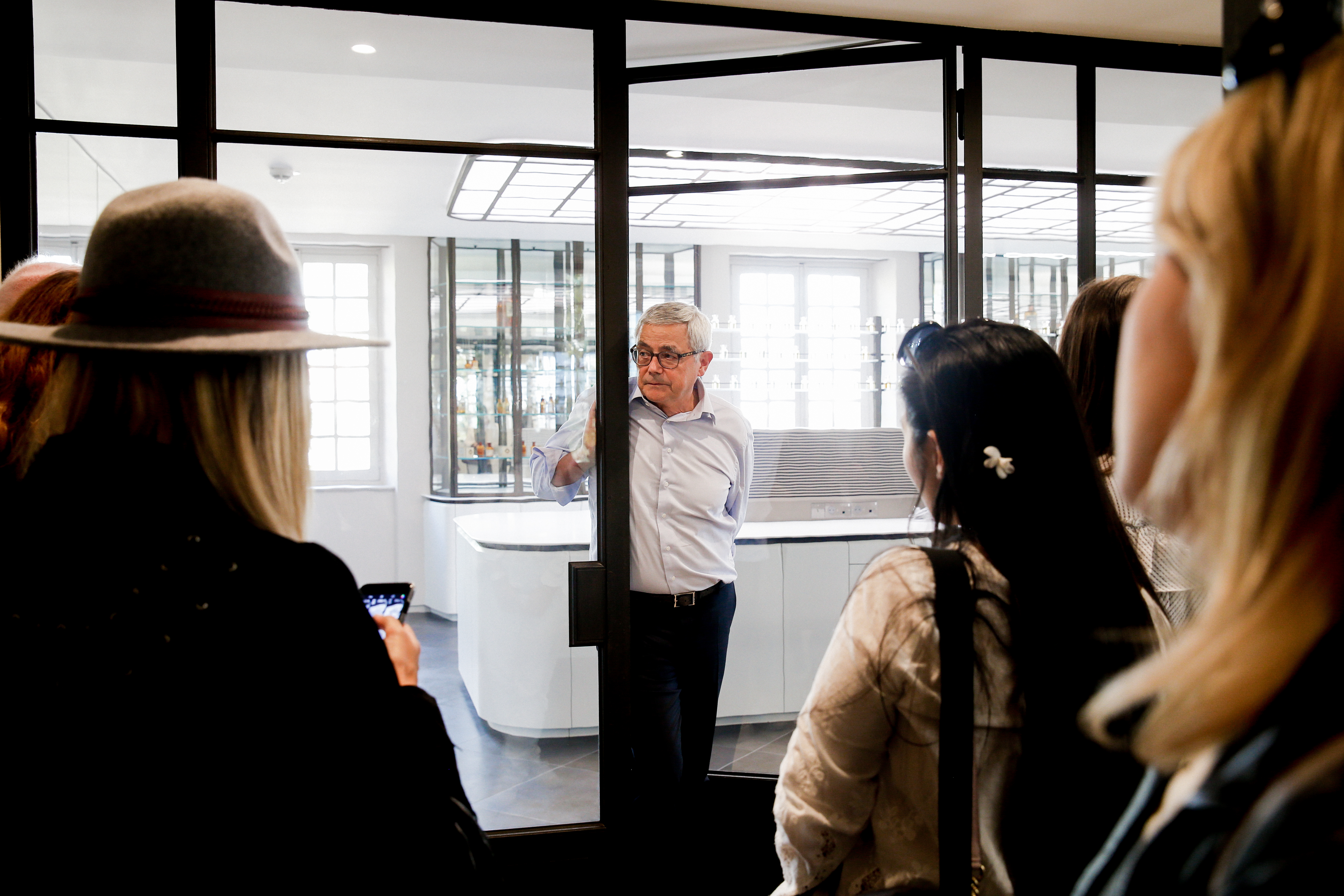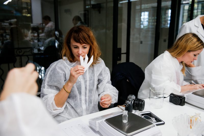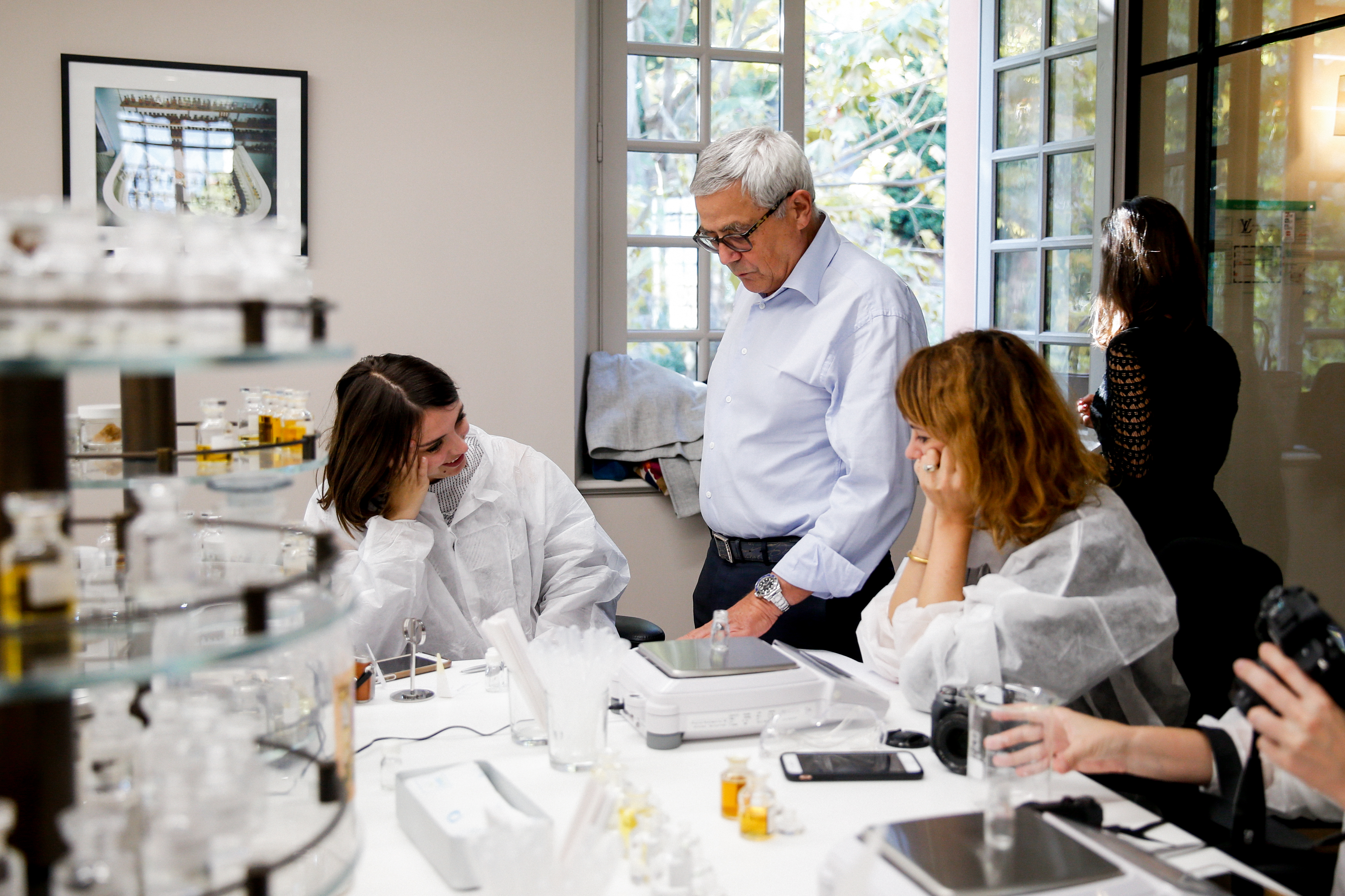 Après la visite des lieux, une aventure assez extraordinaire nous attendait : rencontrer le nez de Dior, François Demachy himself, mais aussi… créer notre propre parfum. Avec lui. Dans son labo. Je peux vous dire que 1. j’étais dans mes petits souliers face à une telle personnalité et 2. créer son parfum est très clairement un métier, au cas où nous en doutions ! Malgré tout le soin, voire l’amour que j’y ai mis, les 3 essais que j’ai patiemment tenté d’élaborer sont ni plus ni moins à vomir… !