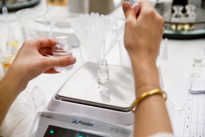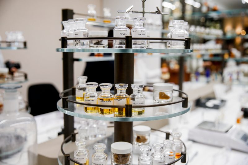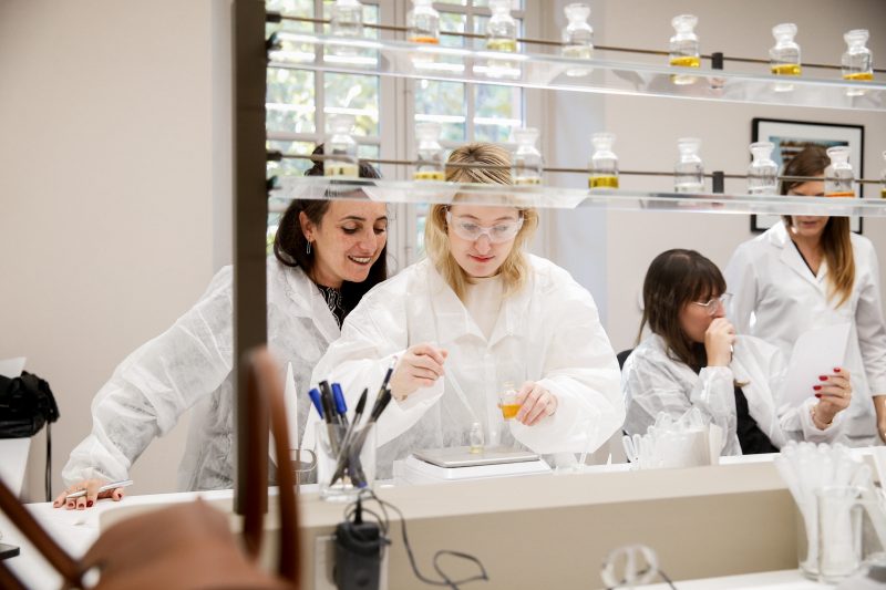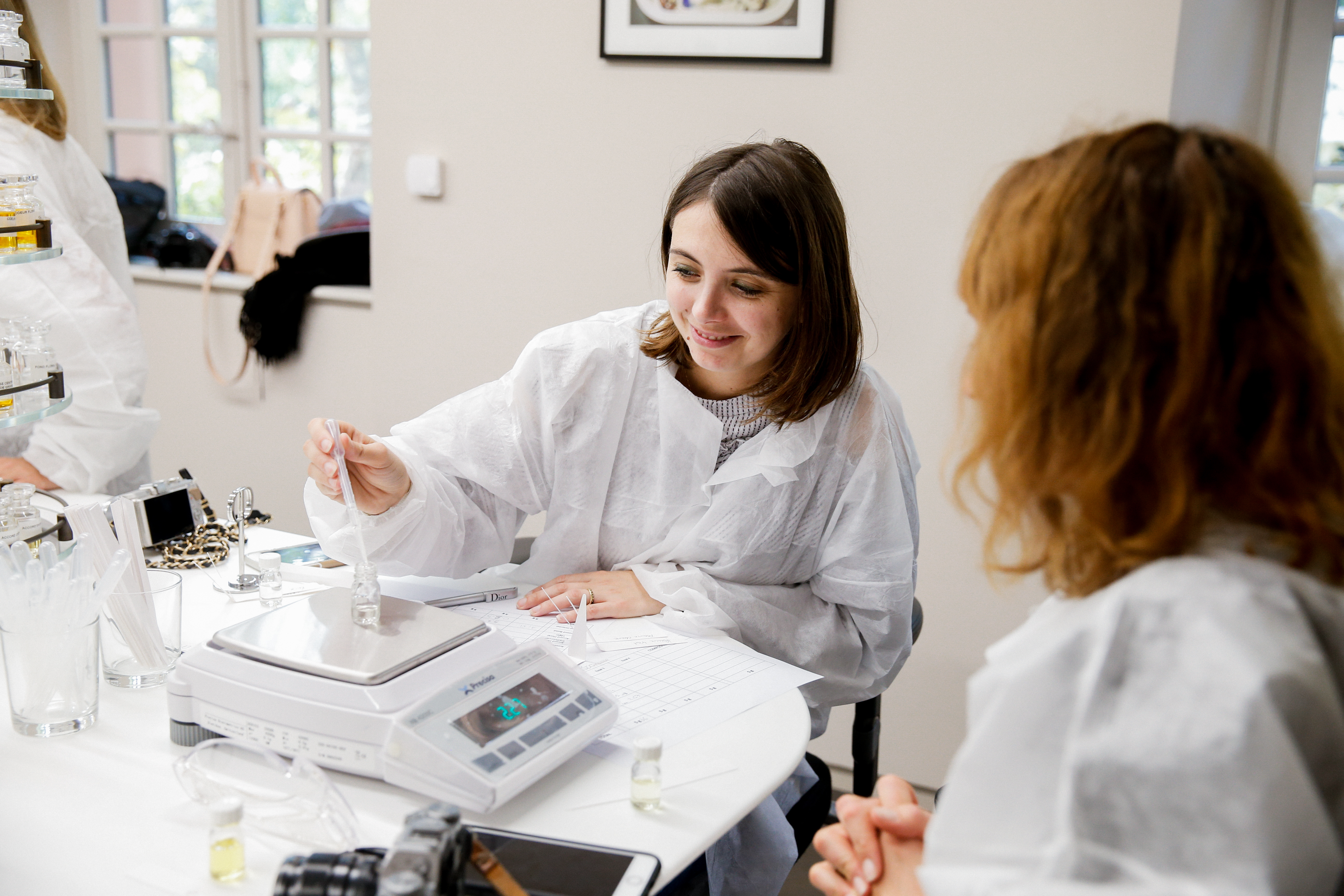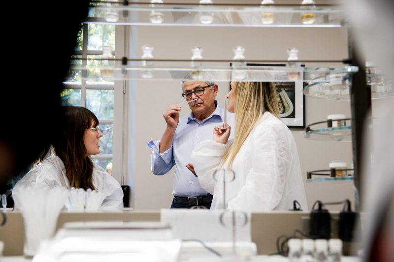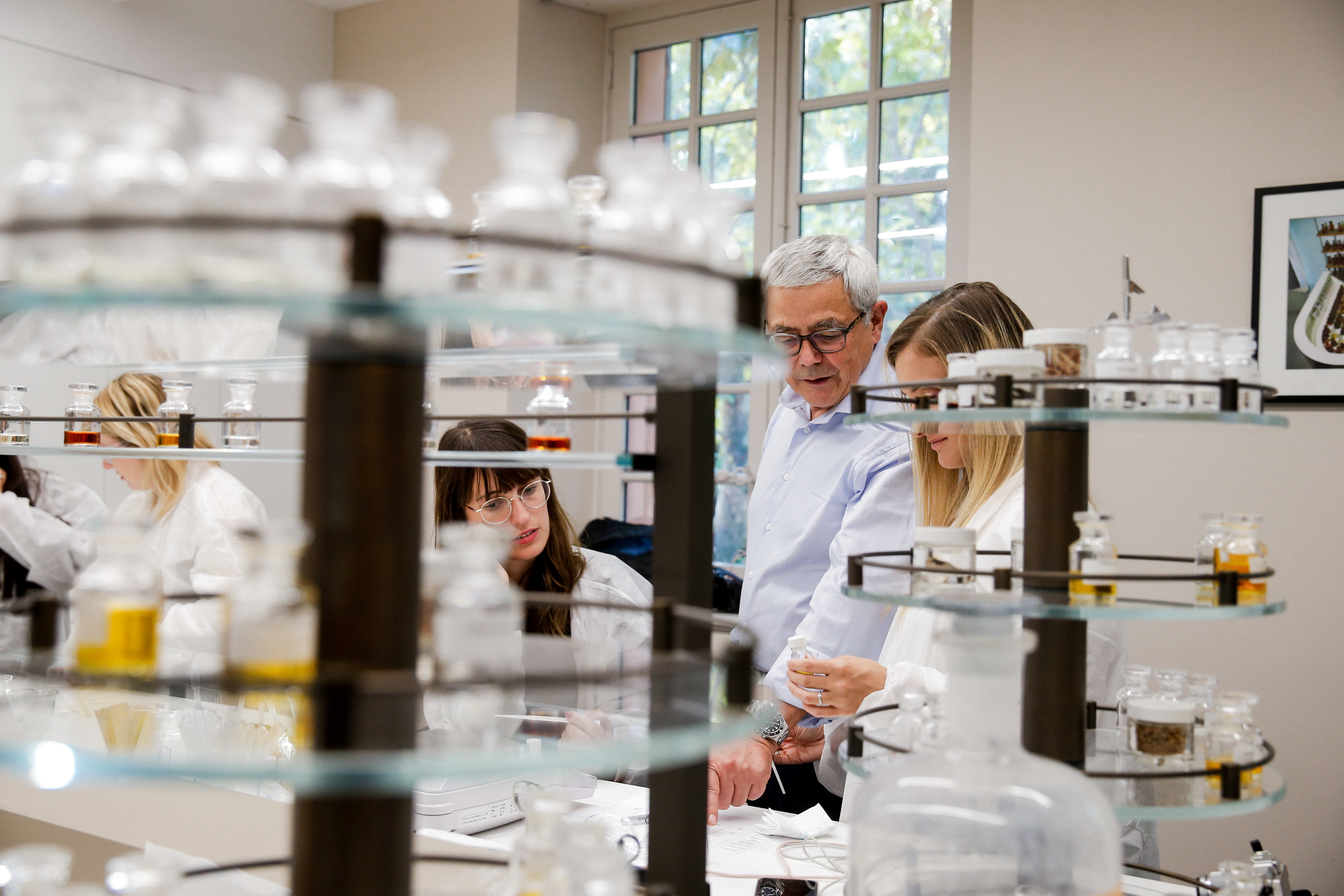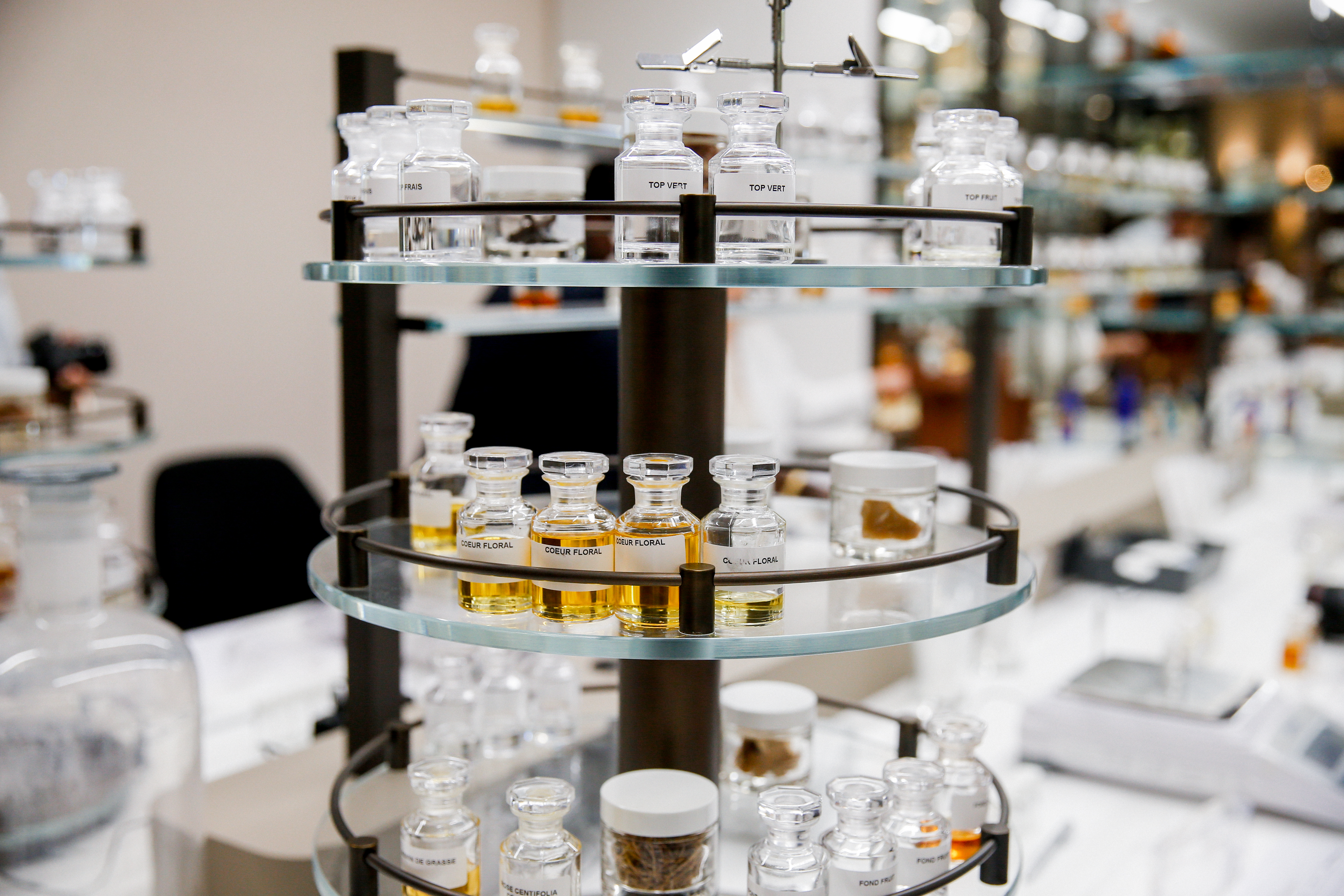 Après la visite des lieux, une aventure assez extraordinaire nous attendait : rencontrer le nez de Dior, François Demachy himself, mais aussi… créer notre propre parfum. Avec lui. Dans son labo. Je peux vous dire que 1. j’étais dans mes petits souliers face à une telle personnalité et 2. créer son parfum est très clairement un métier, au cas où nous en doutions ! Malgré tout le soin, voire l’amour que j’y ai mis, les 3 essais que j’ai patiemment tenté d’élaborer sont ni plus ni moins à vomir… !
