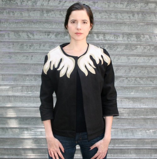 oh elle est chouette cette veste, mais je ne saurais pas comment la porter, bon avec un jean de sûr, ca passe!